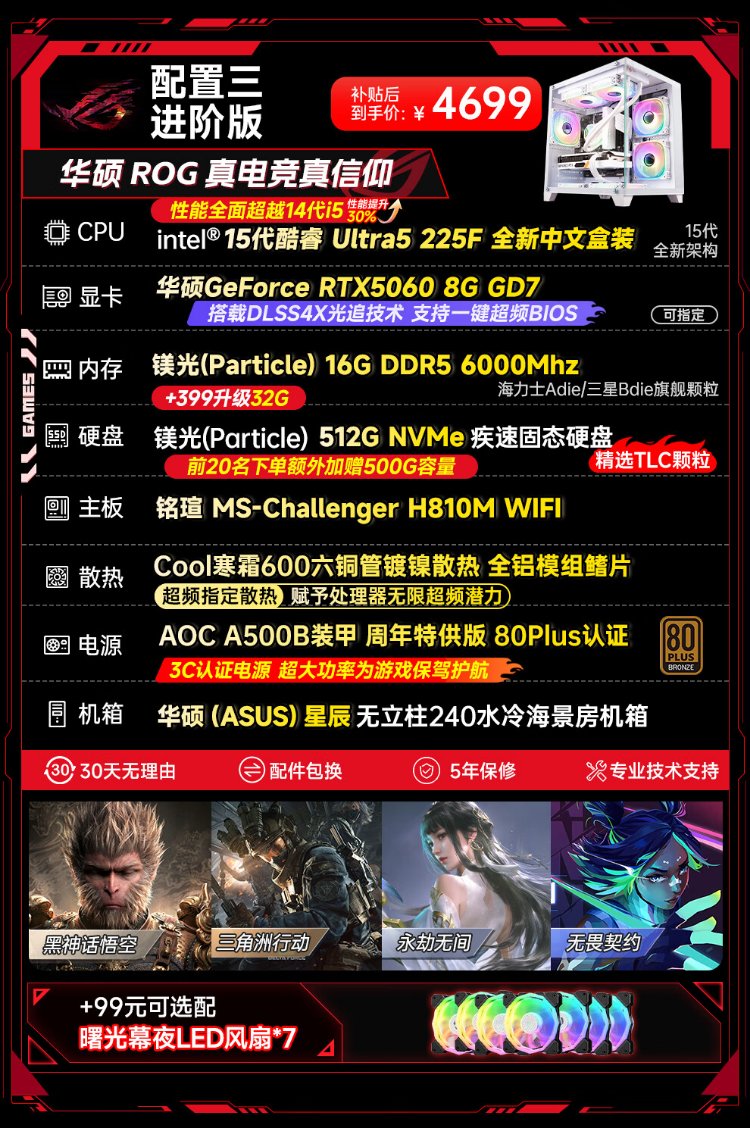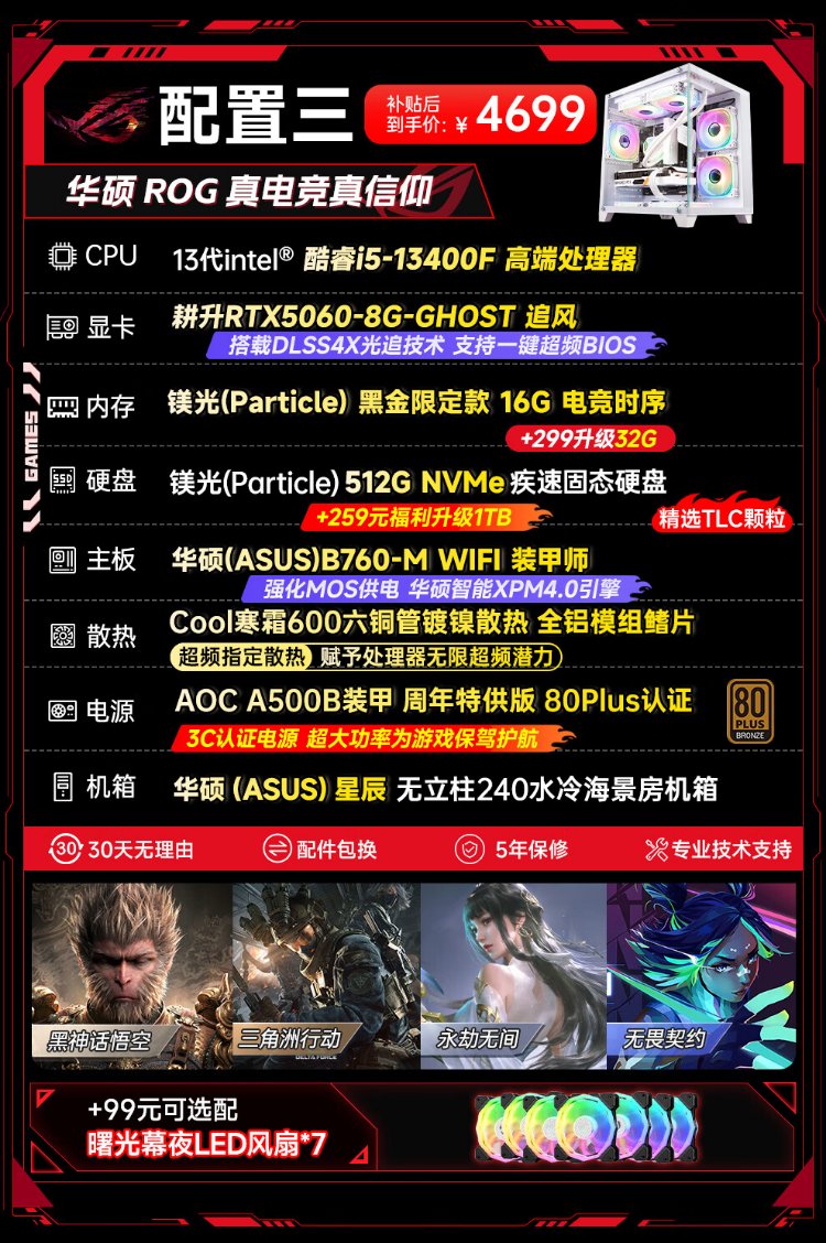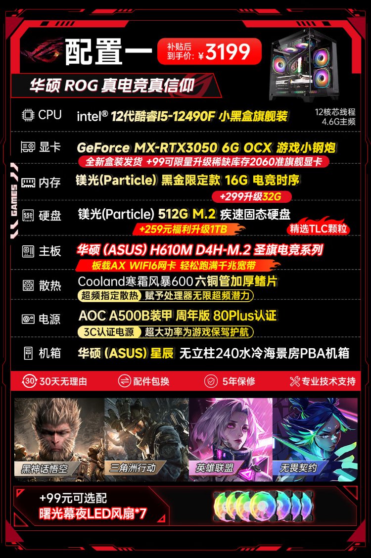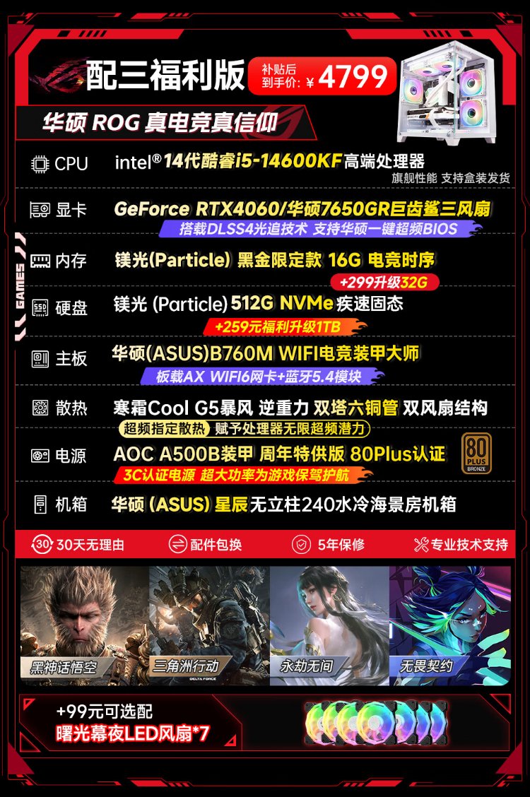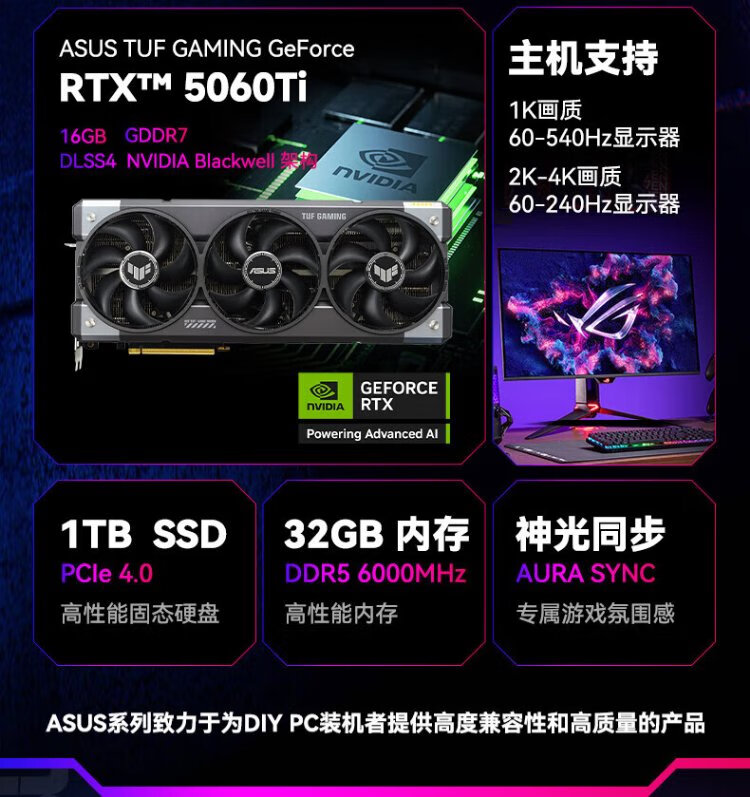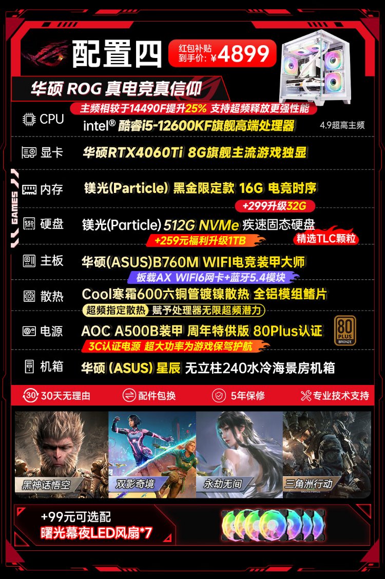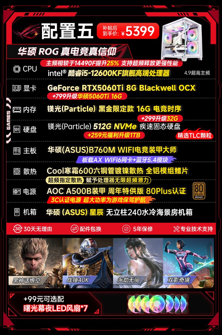 ASUS brand desktop Core i5 12600KF/14600KF RTX4060/4060Ti/5060/5060ti/5070 game assembly computer DIY game machine with two 12490F丨16G丨RTX5060
