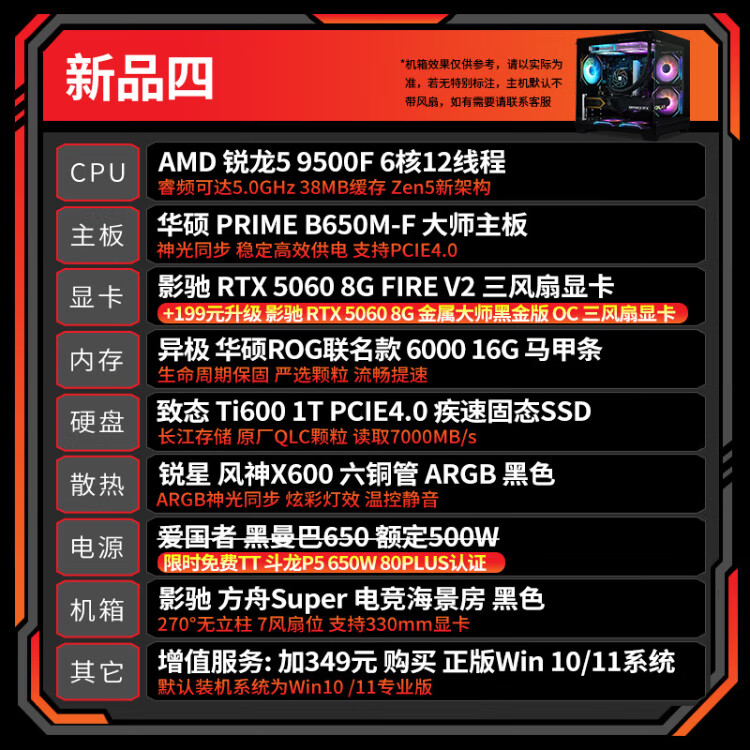 AMD Ryzen 5700X 9600X host 5070/5060TI/5060 graphics card Delta mobile live game e-sports desktop computer DIY assembly machine sea view room complete machine configuration six R5 9600X/5060