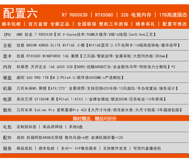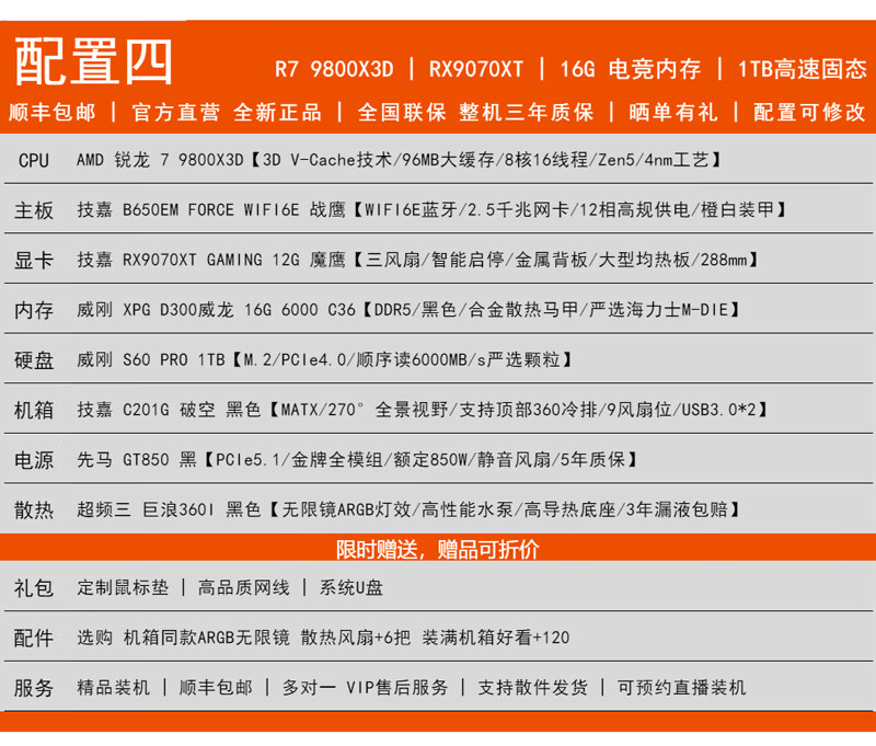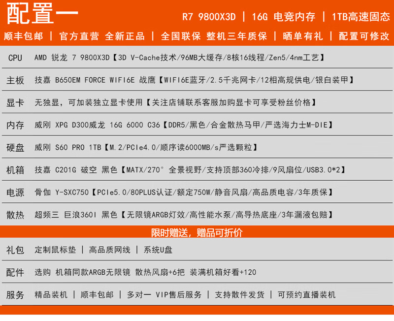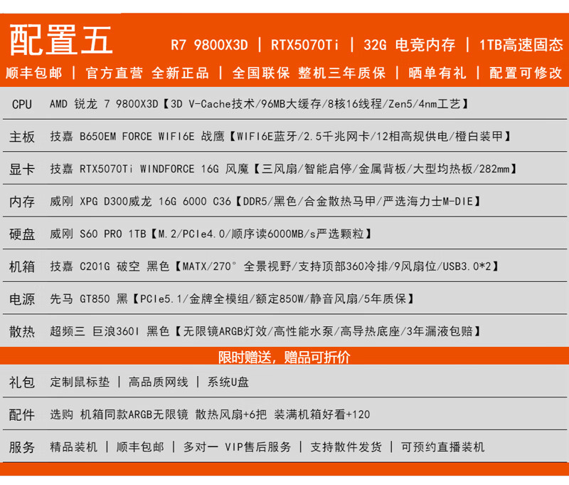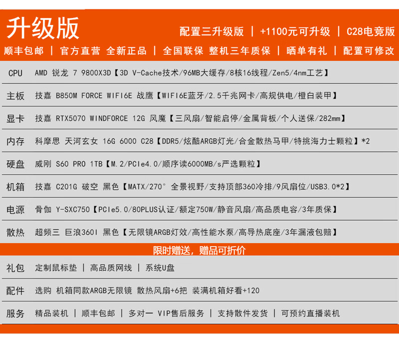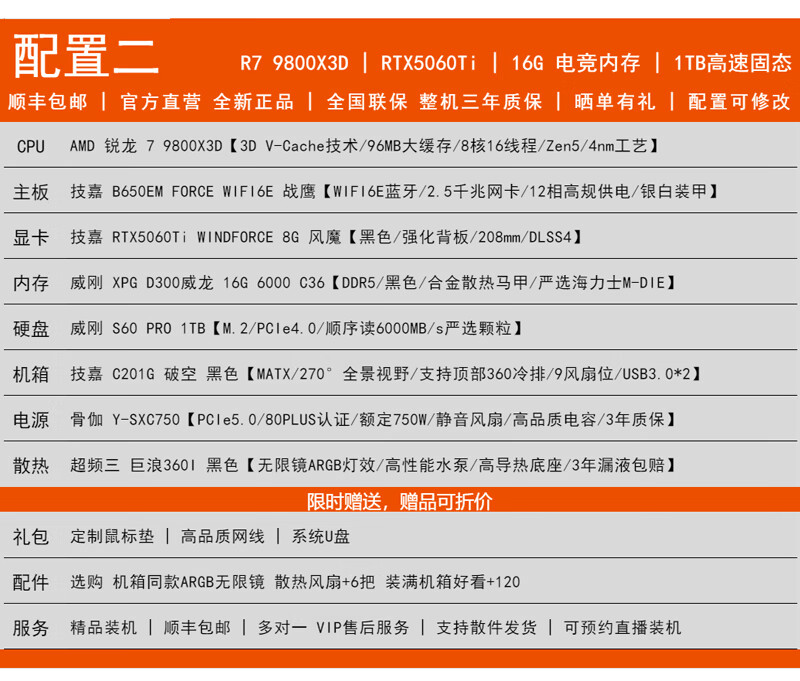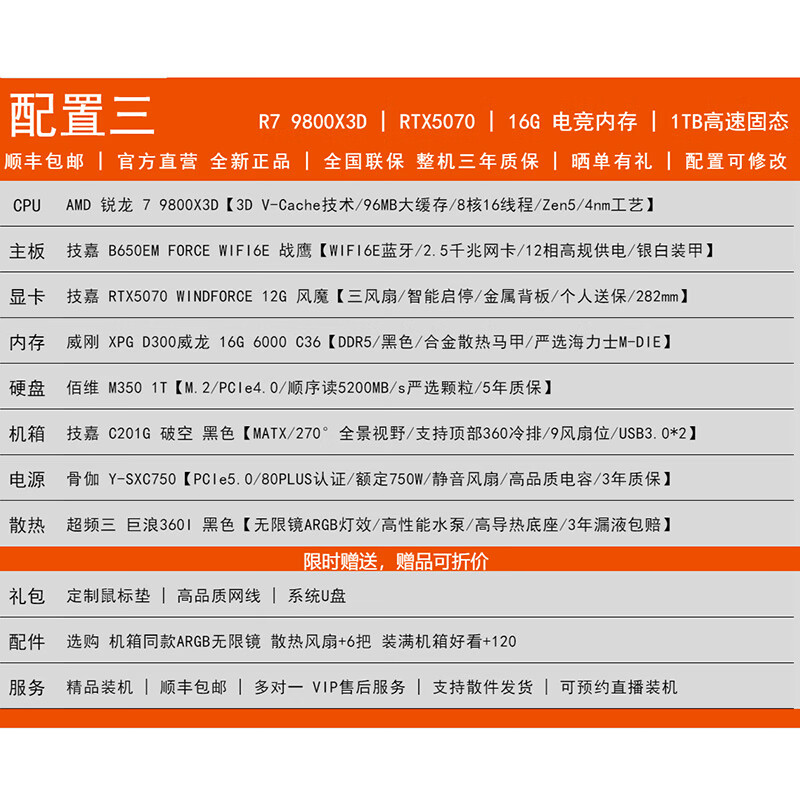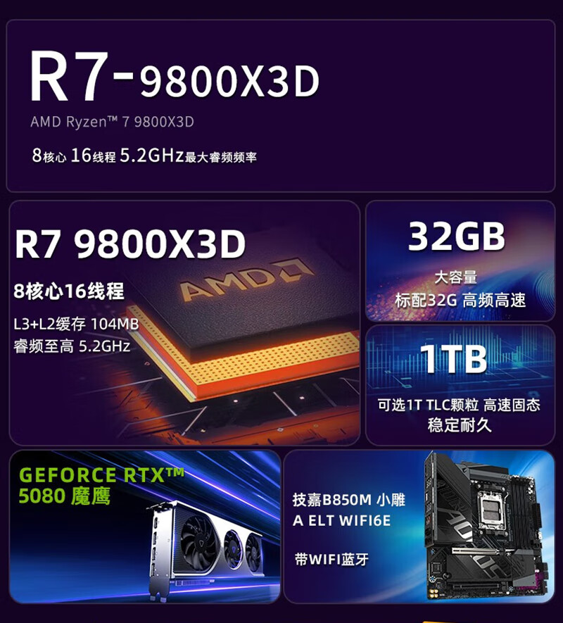 GIGABYTE AMD Ryzen R7 9800X3D/RTX5070/5060Ti/5070Ti Desktop mainstream e-sports game live design AI drawing 3A host computer complete machine with 3 9800X3D/5070/16G/1TB