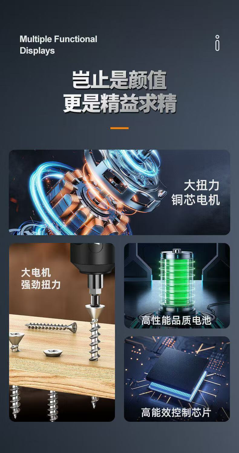 Jingdong Express Tournevis électrique Outil de réparation et de démontage d'ordinateur Ensemble phare portable et pratique Cette machine + Jeu de tournevis 15 pièces Moteur 280 Batterie d'une capacité de 400