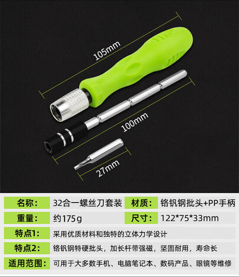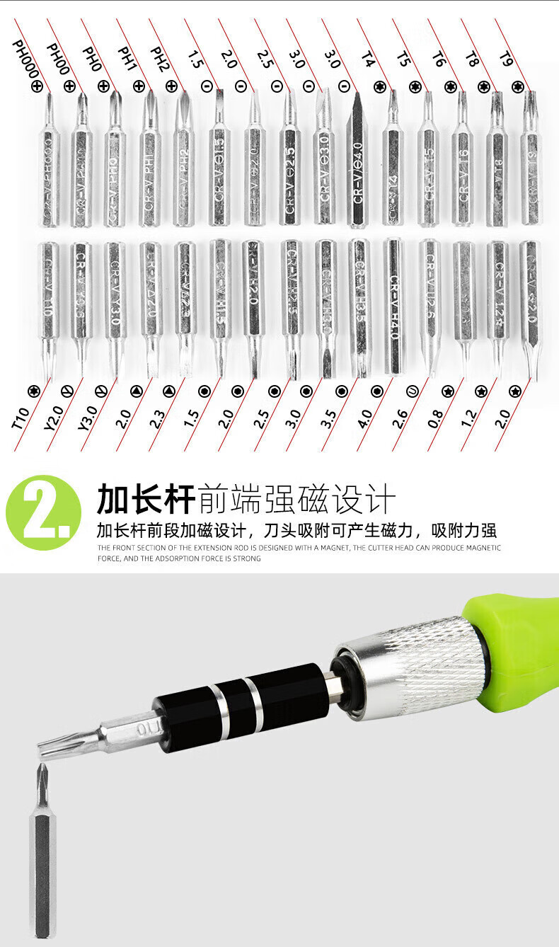 Jeu de tournevis pour outils informatiques 32 en 1, manuel domestique, ordinateur multifonction, téléphone portable, outil de démontage et de réparation pour ordinateur portable 32 en 1 tournevis * 2 jeux
