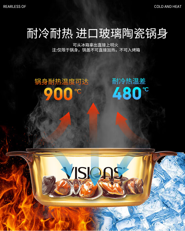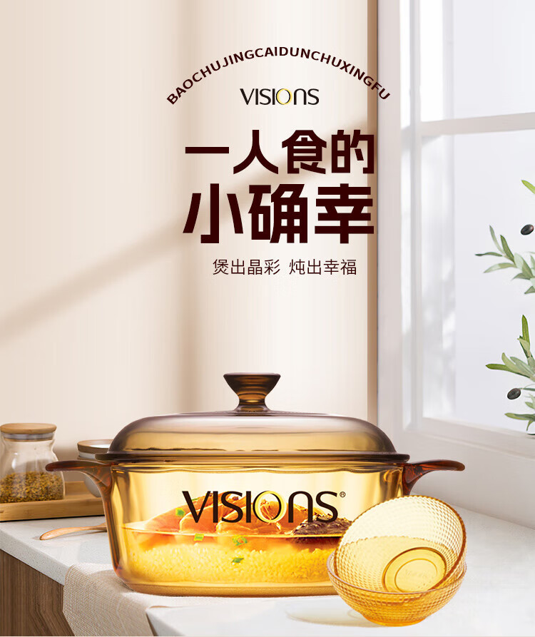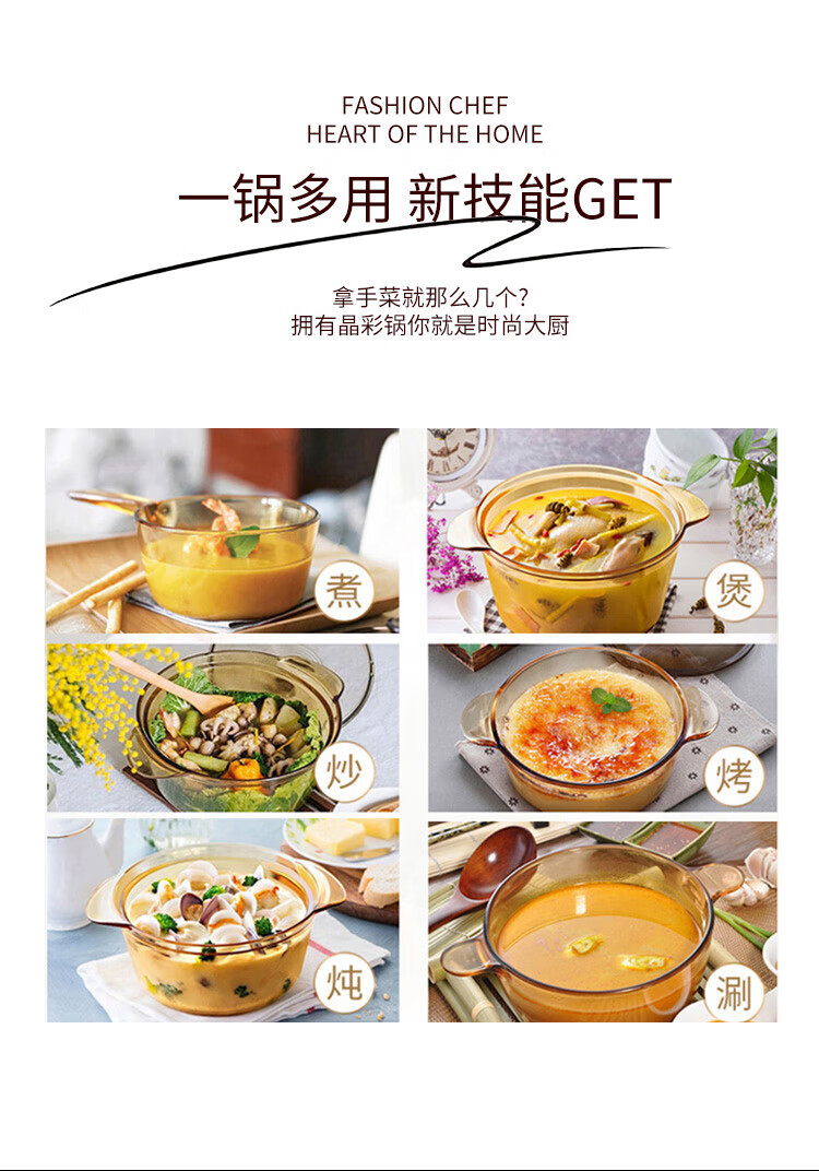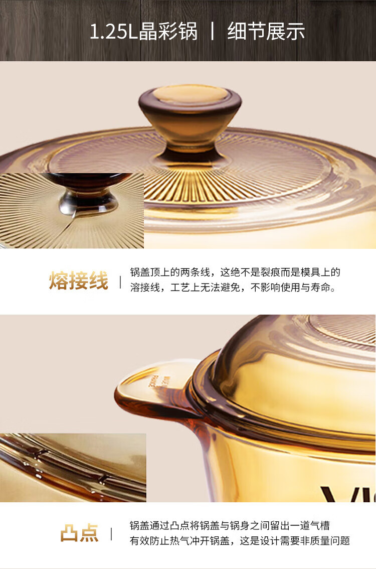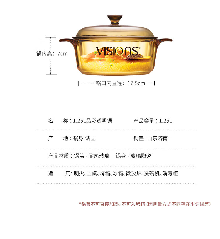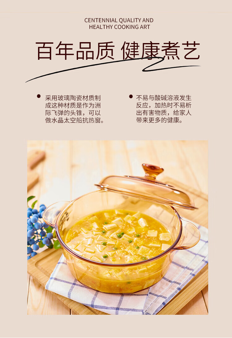 Corning crystal clear pot 1.25L small soup pot stew pot baby food supplement pot glass pot kitchen good stuff VS12