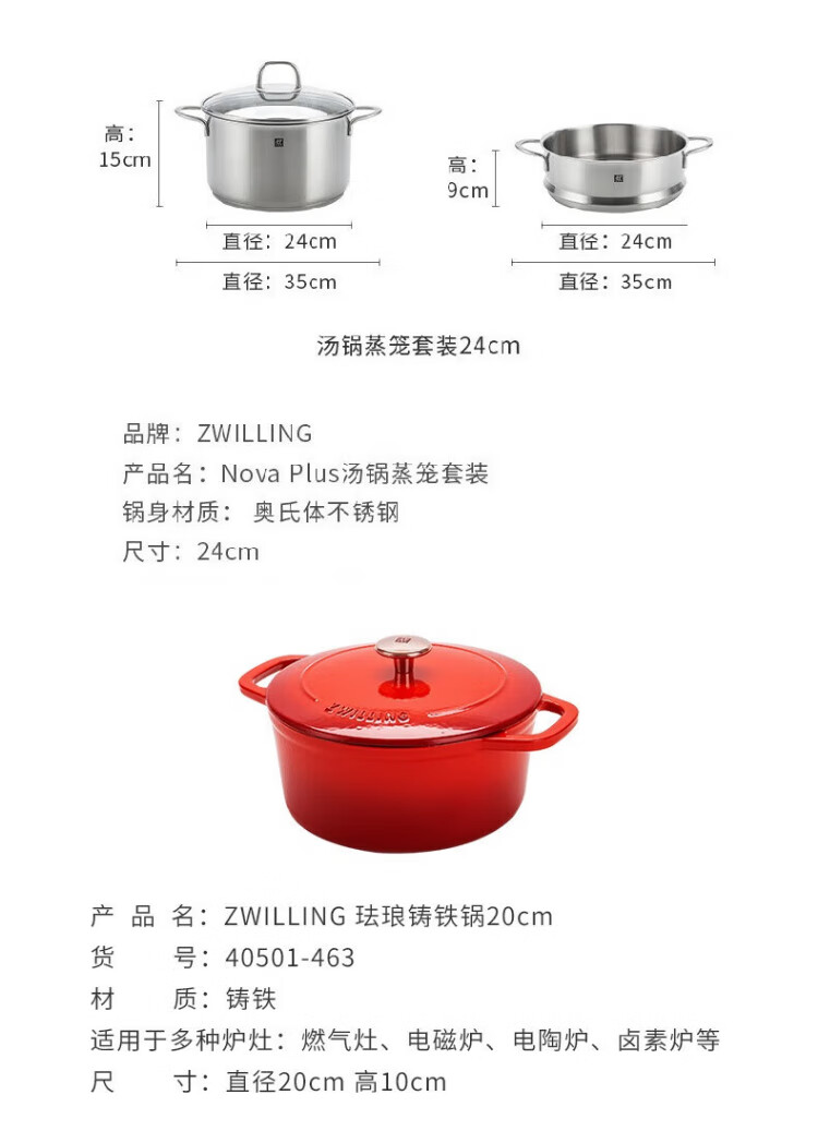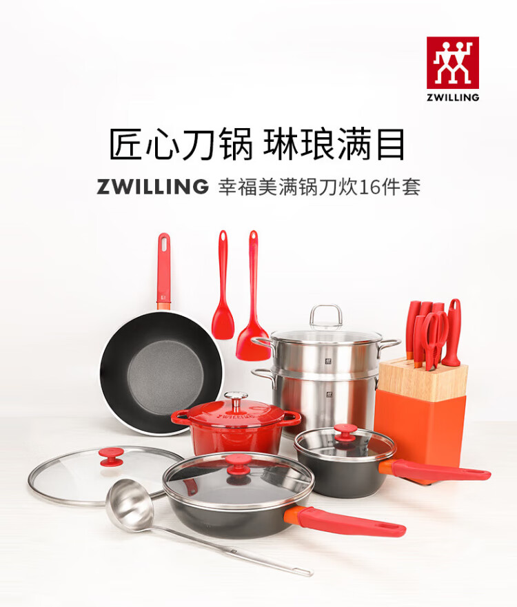 ZWILLING pot set, soup pot, steamer, knife, Now Plus non-stick wok, frying pan, milk pot, enamel pot, kitchen utensils 16-piece set