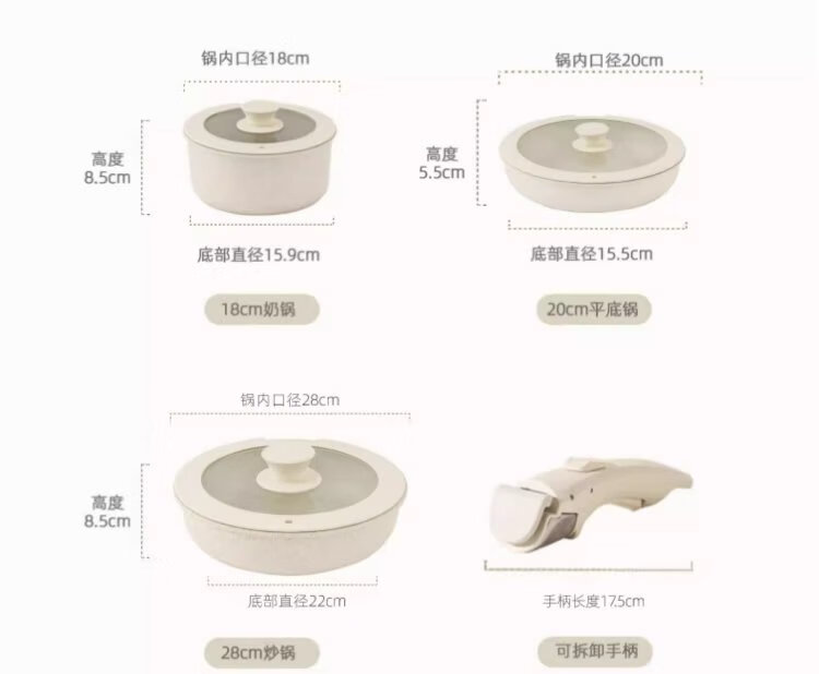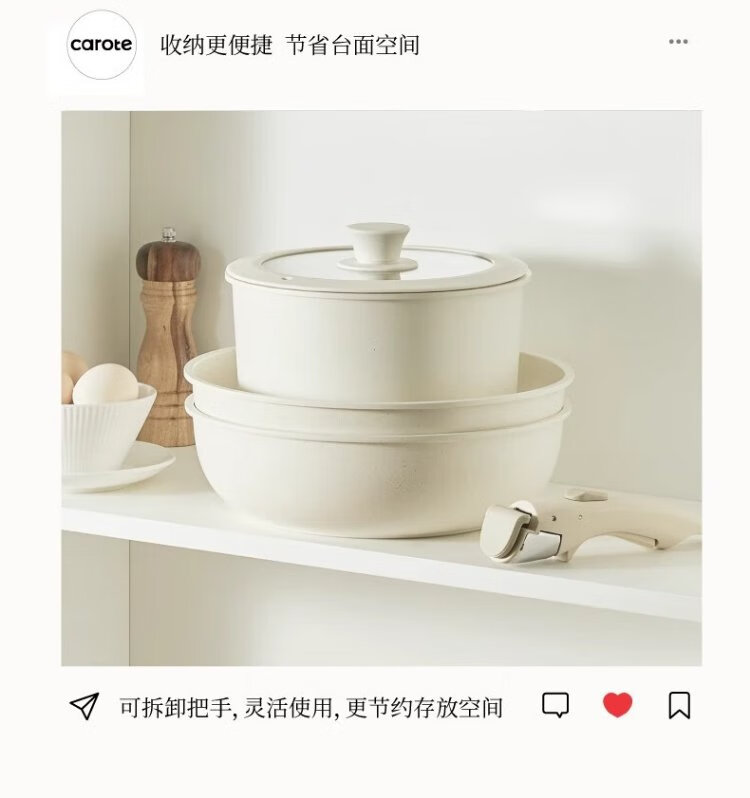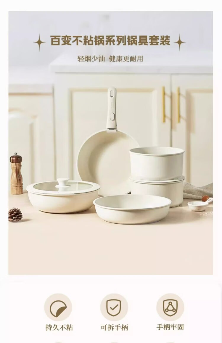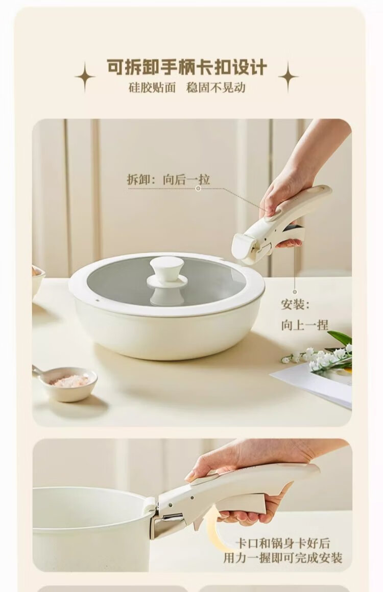 CaROTE detachable handle pan non-stick frying pan frying pan milk pan stacked pot household pot set three-piece set handle detachable wok induction cooker