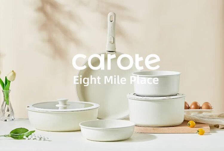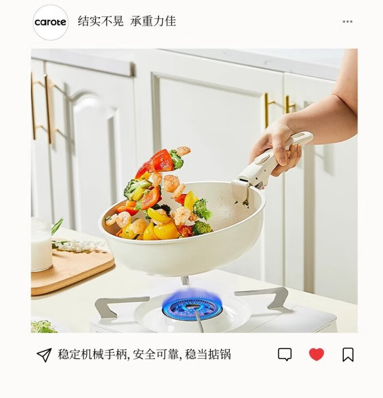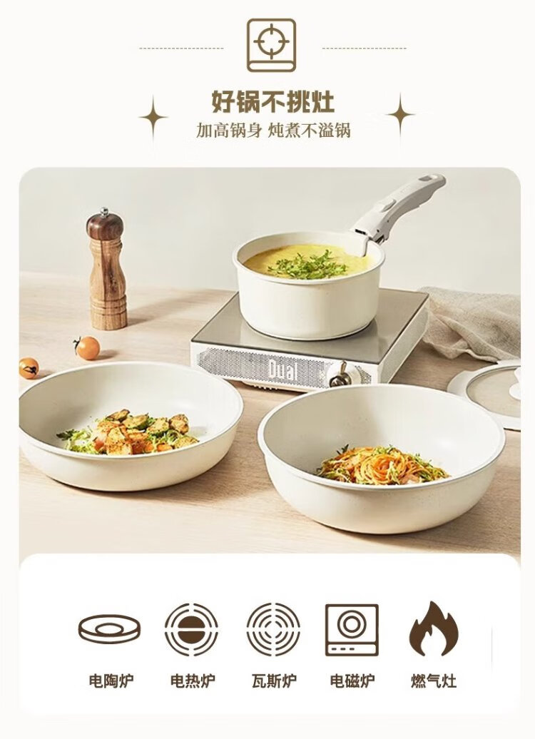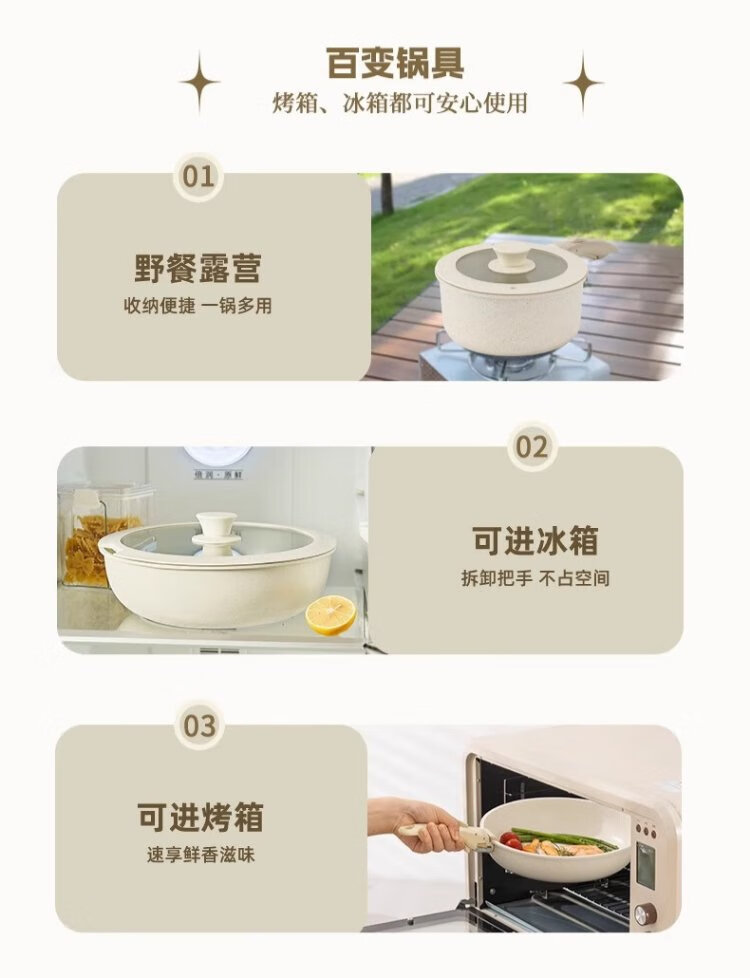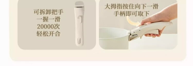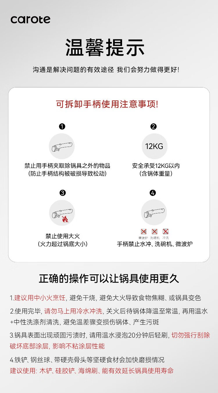 CaROTE detachable handle pan non-stick frying pan frying pan milk pan stacked pot household pot set three-piece set handle detachable wok induction cooker
