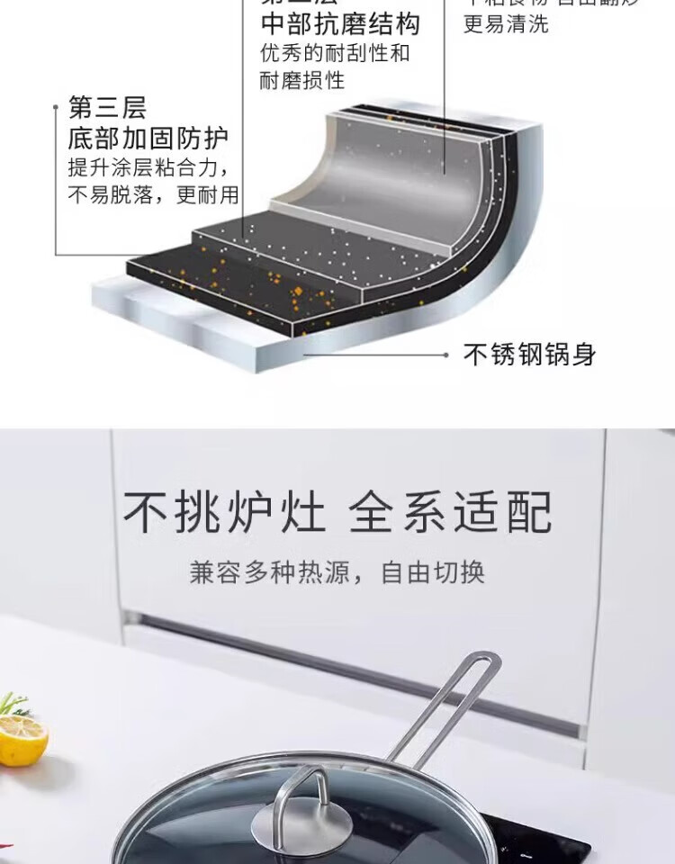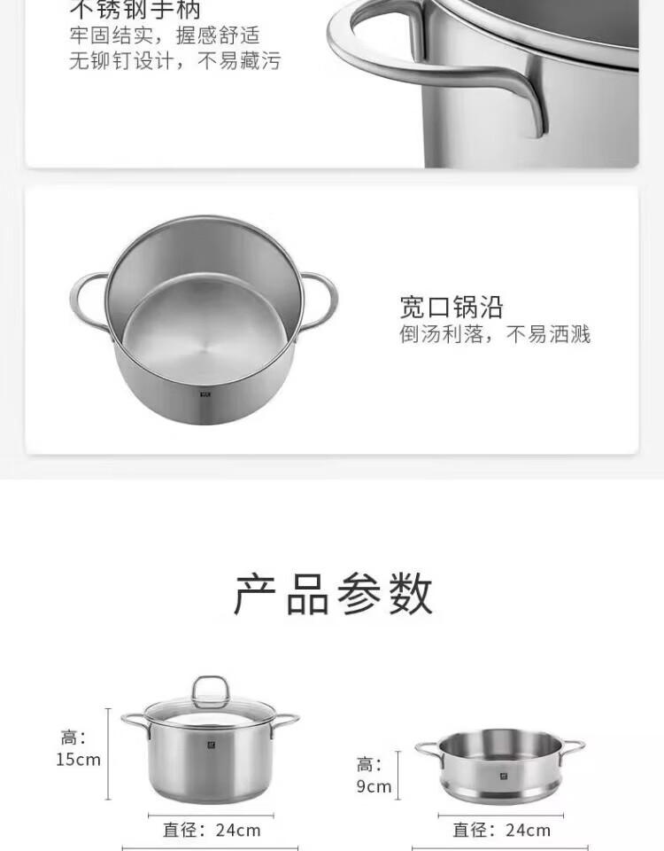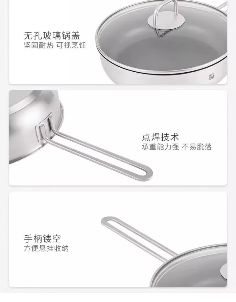 ZWILLING Family Portrait Heart-beating Kitchenware Set Iron Wok Non-stick Pan Frying Pan Soup Pot Enamel Pan Kitchen Goods SILVER Silver Series Iron Wok 6-piece Set
