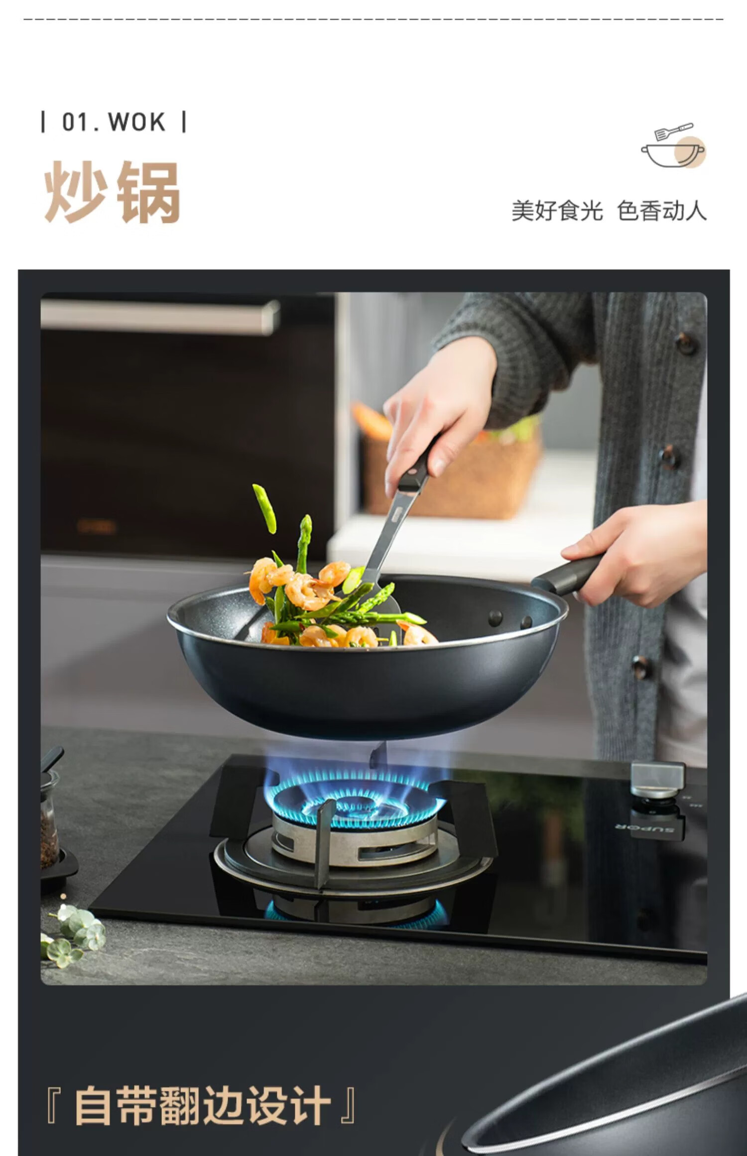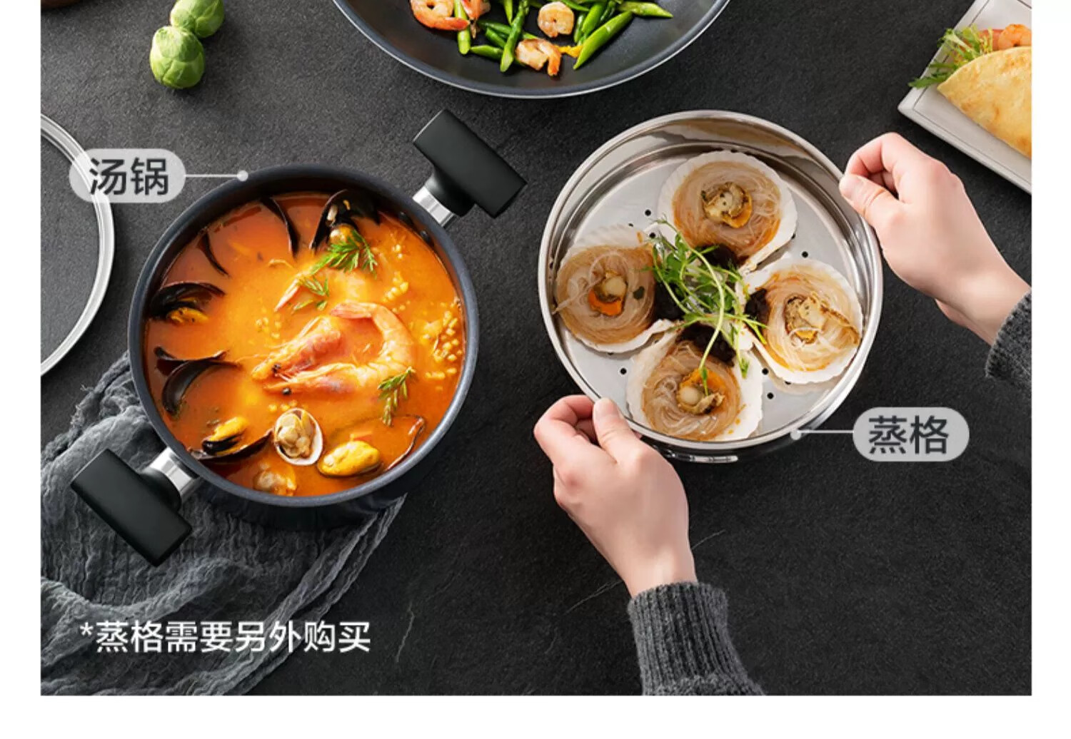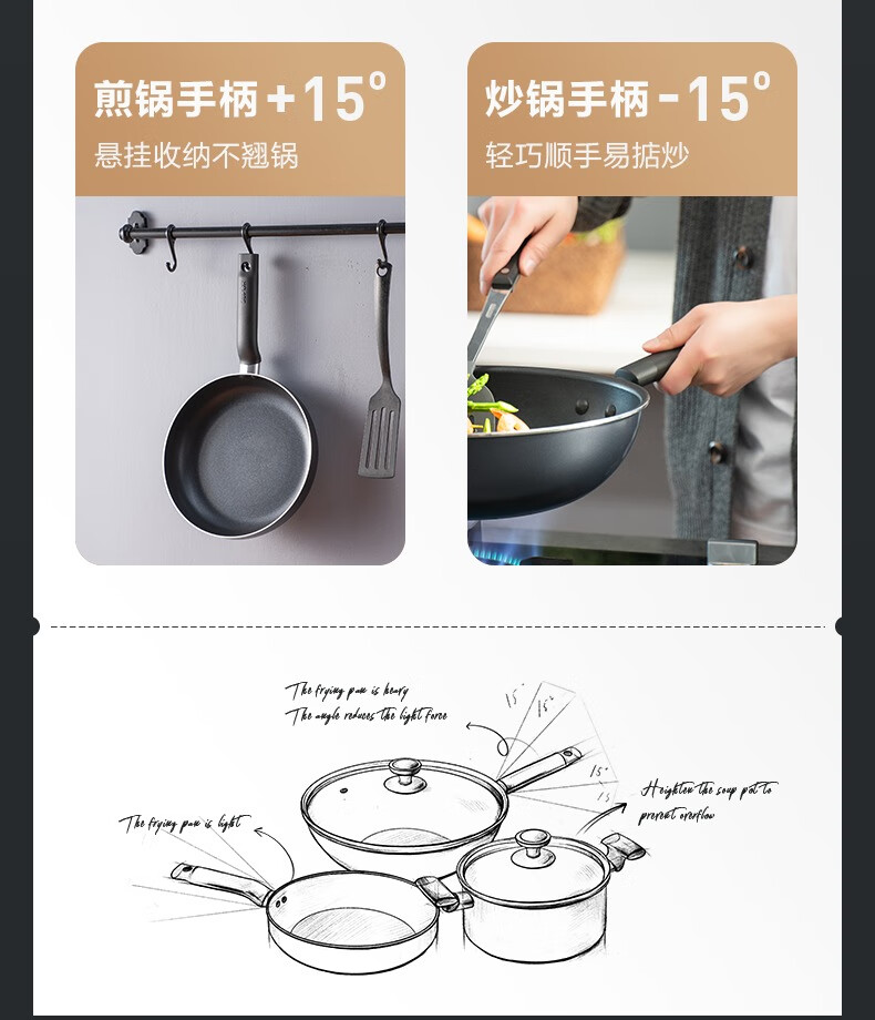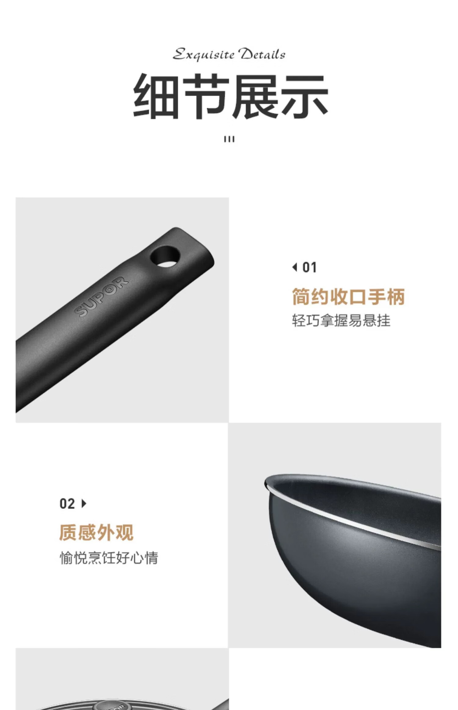 SUPOR non-stick pan, wok, complete set of kitchen utensils and pots, gas induction cooker, frying pan, soup pot, steamer, wok + frying pan + soup pot + steamer 4-piece set