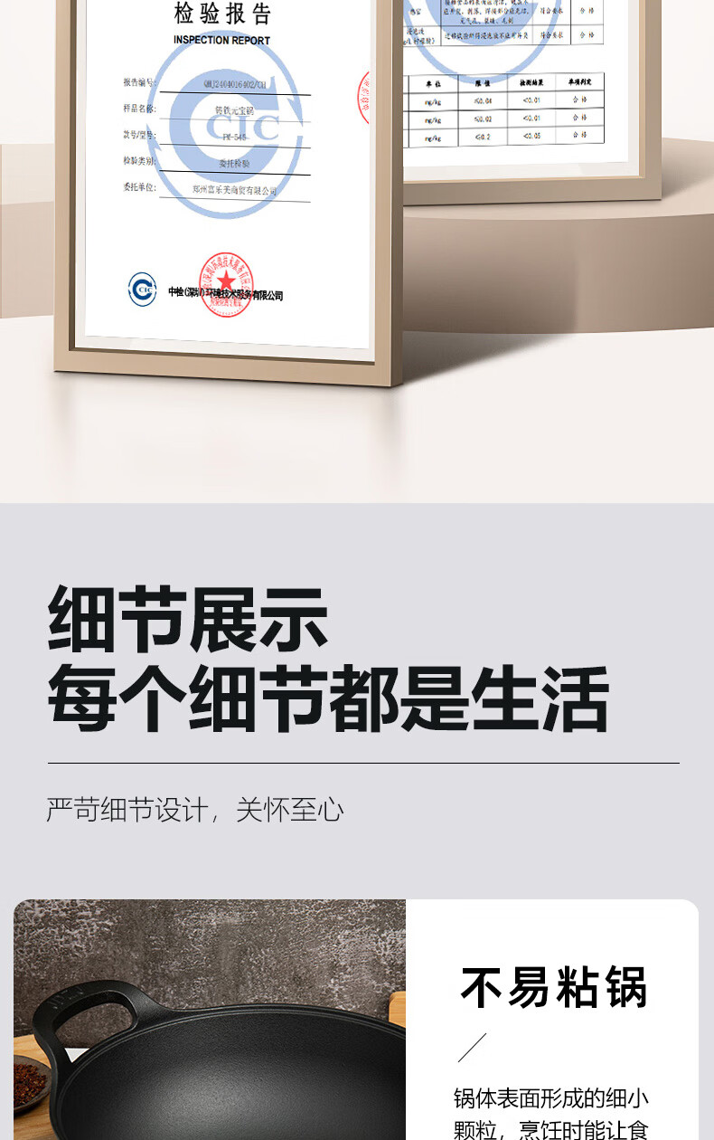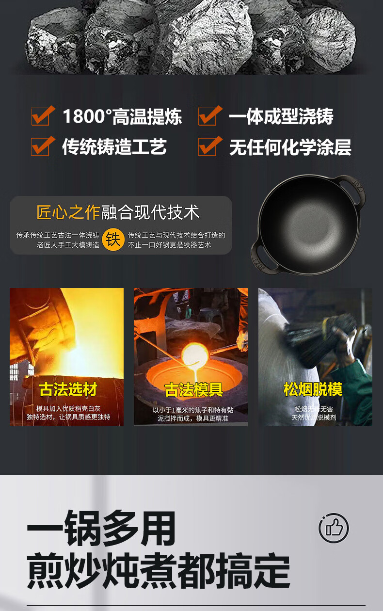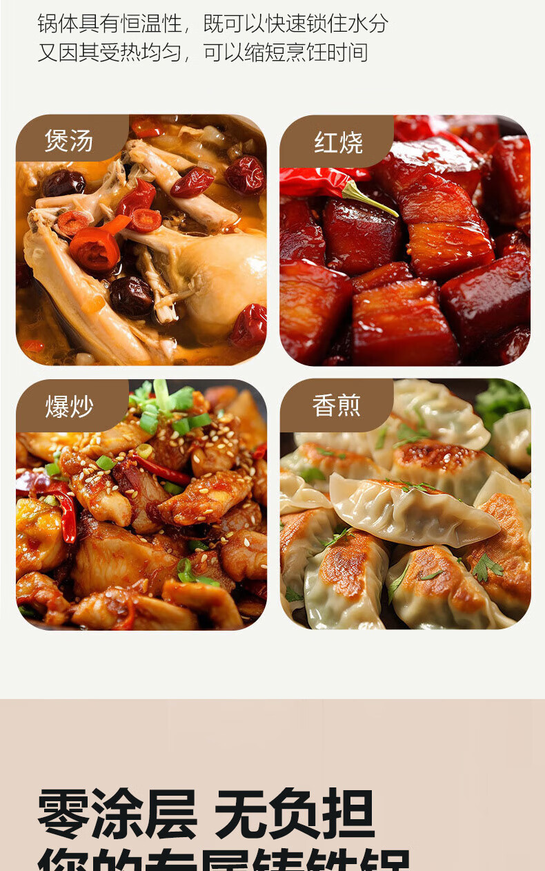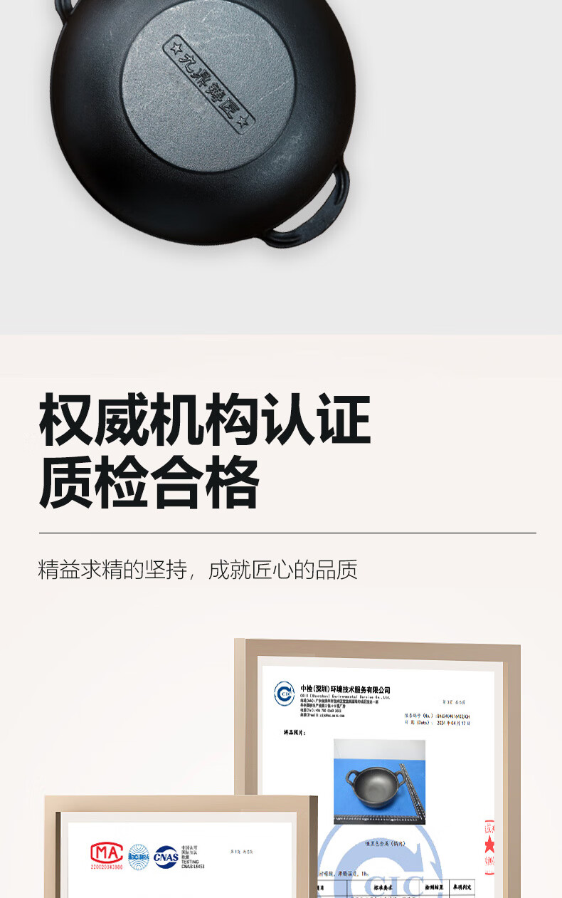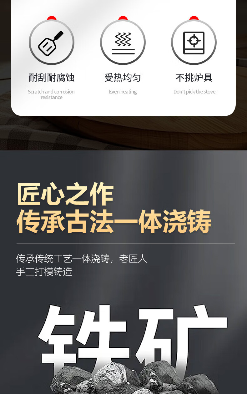 Jiuding Zhujiang cast iron ingot pot double-ear stew pot wok is not easy to stick to the pot uncoated old-fashioned multi-functional flat bottom pig iron pot flagship upgraded version 34cm - suitable for 4-6 people