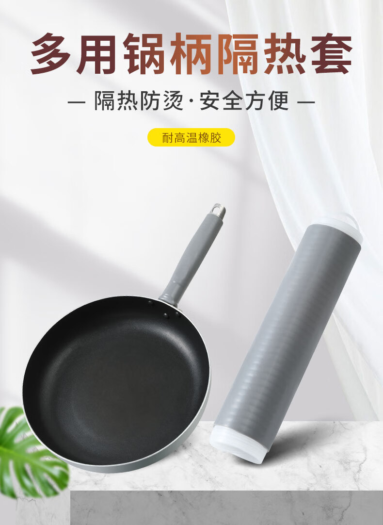 Wok handle anti-scalding heat-insulating cover flat-bottomed iron pot spatula high-temperature-resistant silicone wrapping with pot bowl large spoon handle cover large size No Specifications