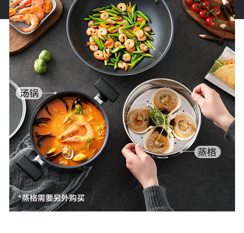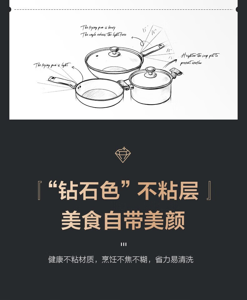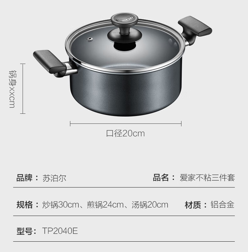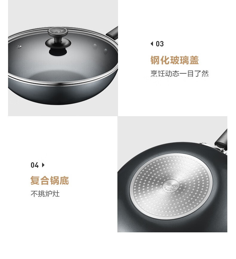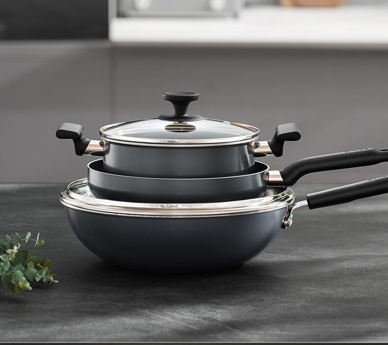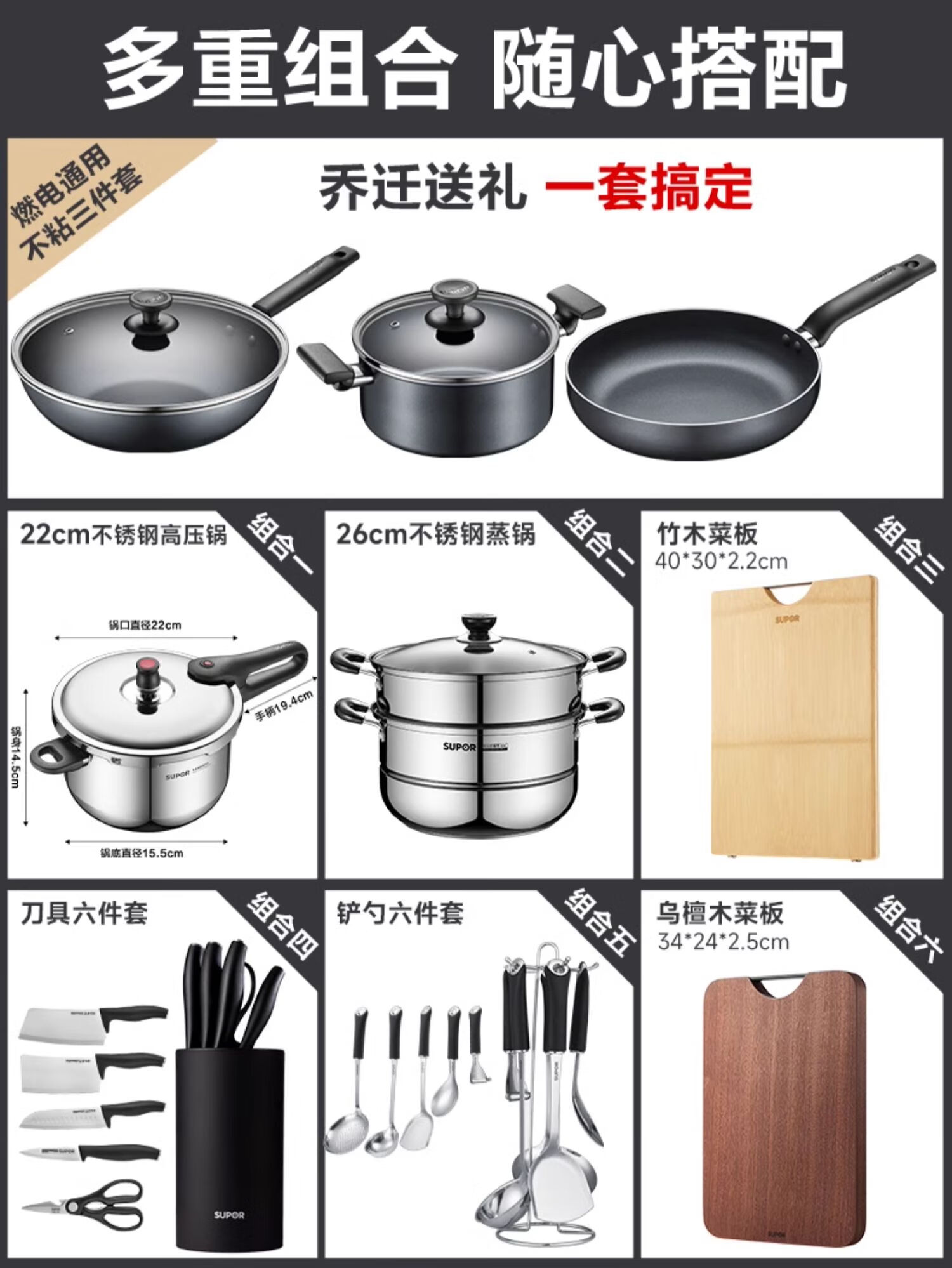 SUPOR pot set non-stick household three-piece kitchen frying pan wok full set gas induction cooker universal kitchen four-piece set 2