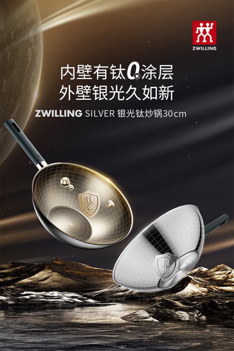 ZWILLING family portrait pot set, wok, frying pan, soup pot, milk pot, enamel pot, sterilizing kitchen knife, kitchen set, housewarming, wedding and wedding kitchenware, flagship upgrade, 20-piece titanium wok set