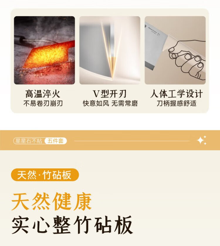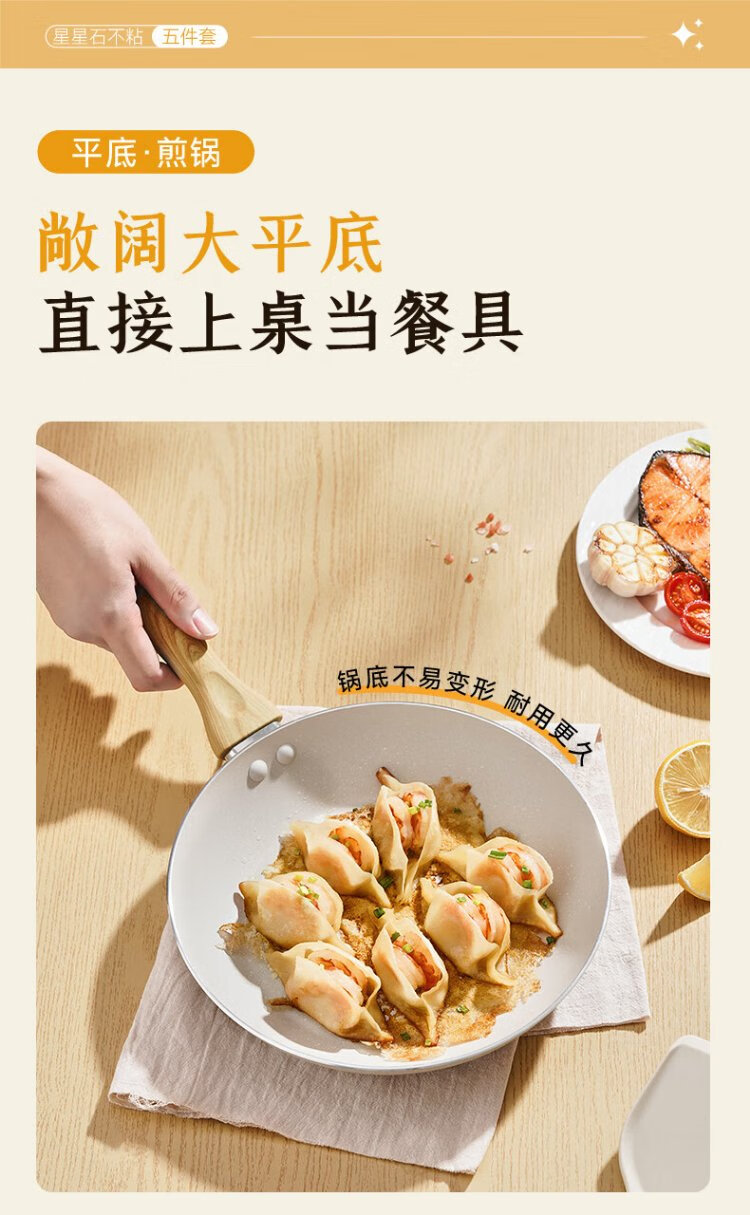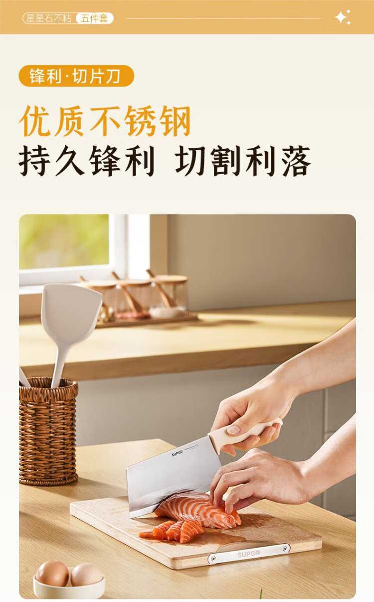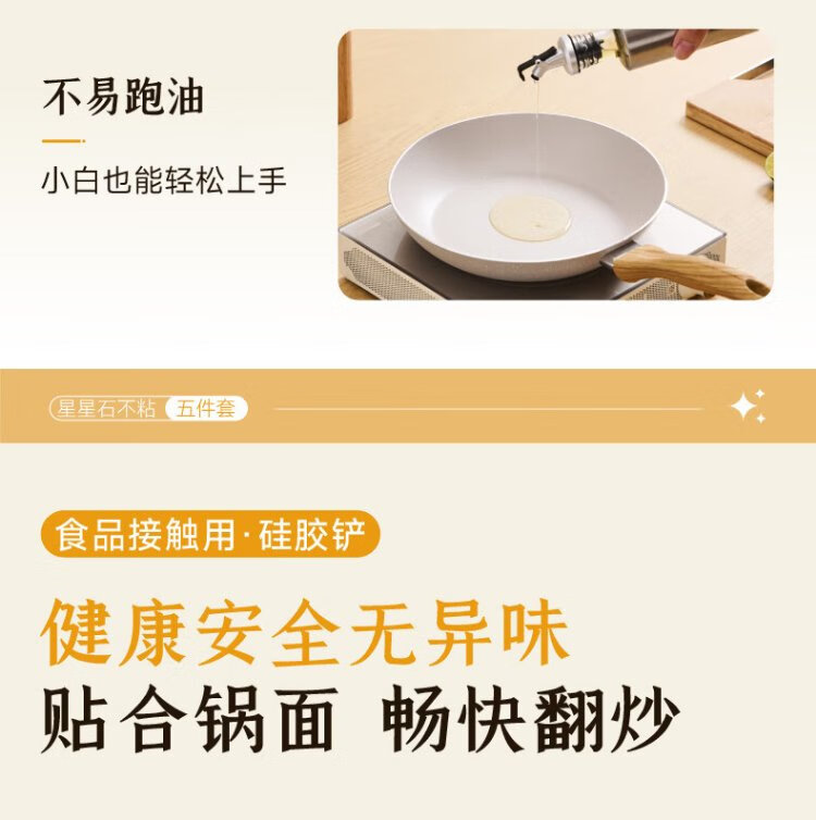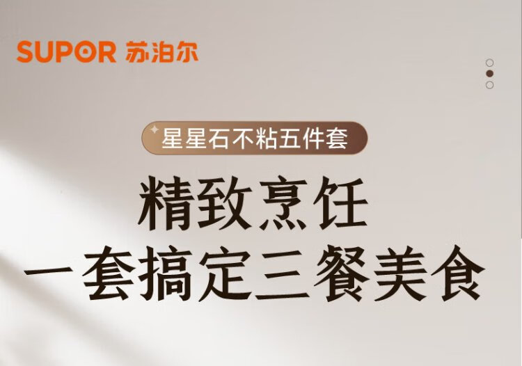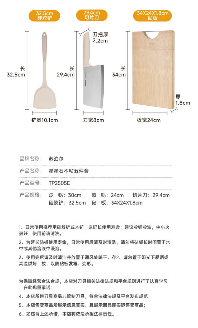 SUPOR pot set, non-stick pot, wok, frying pan, knife, plate and spatula, five-piece set, home kitchen combination set, wok + frying pan + knife + plate + spatula, 5-piece set
