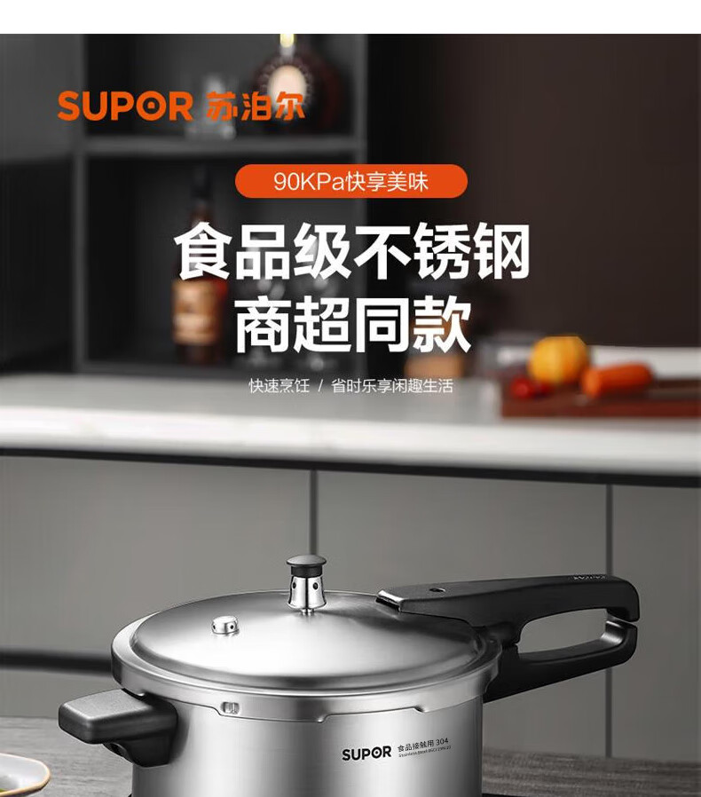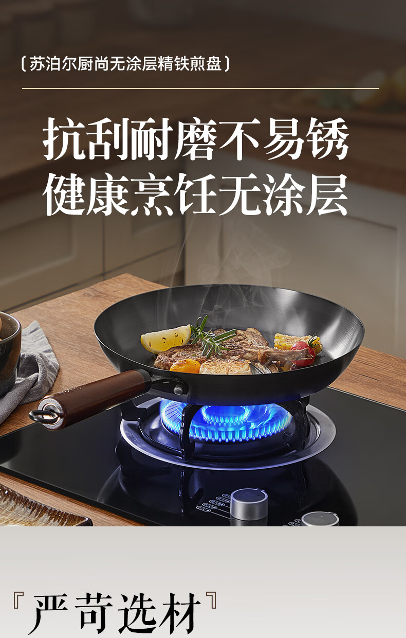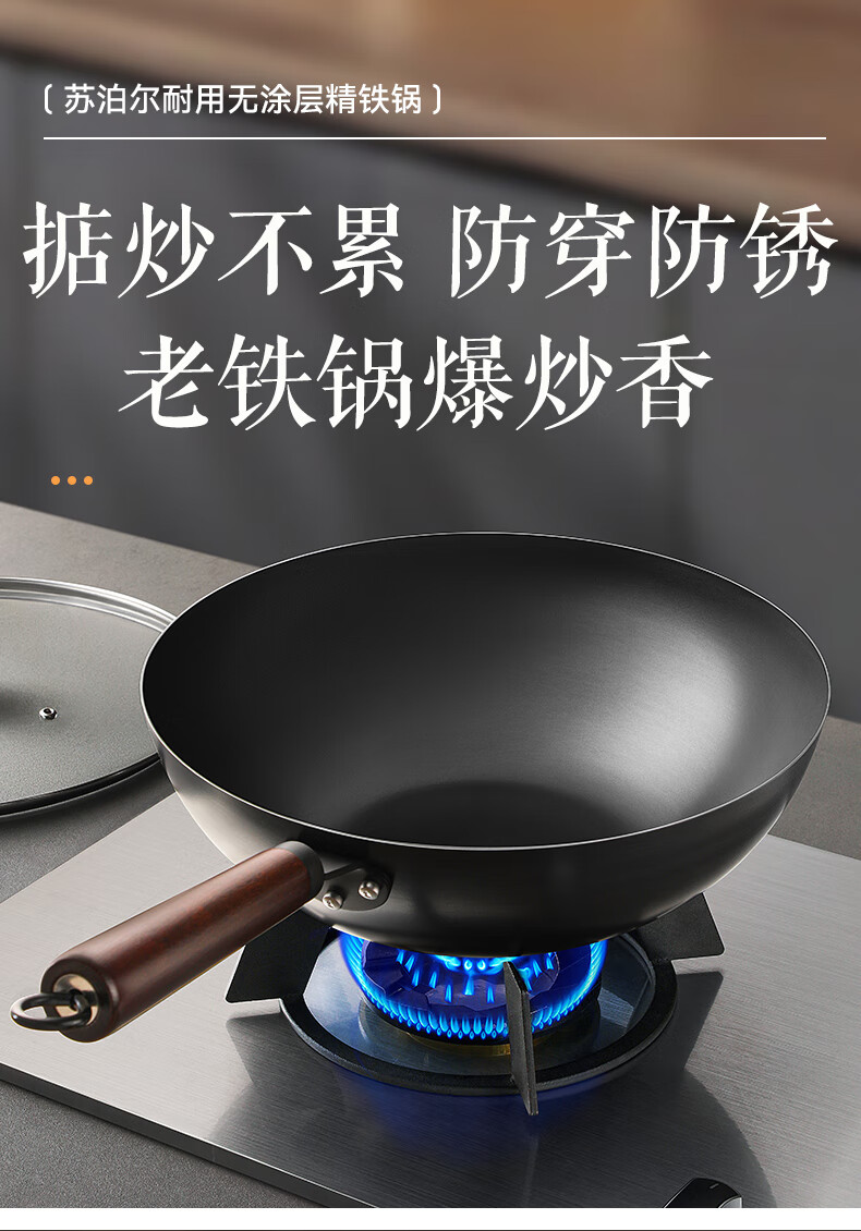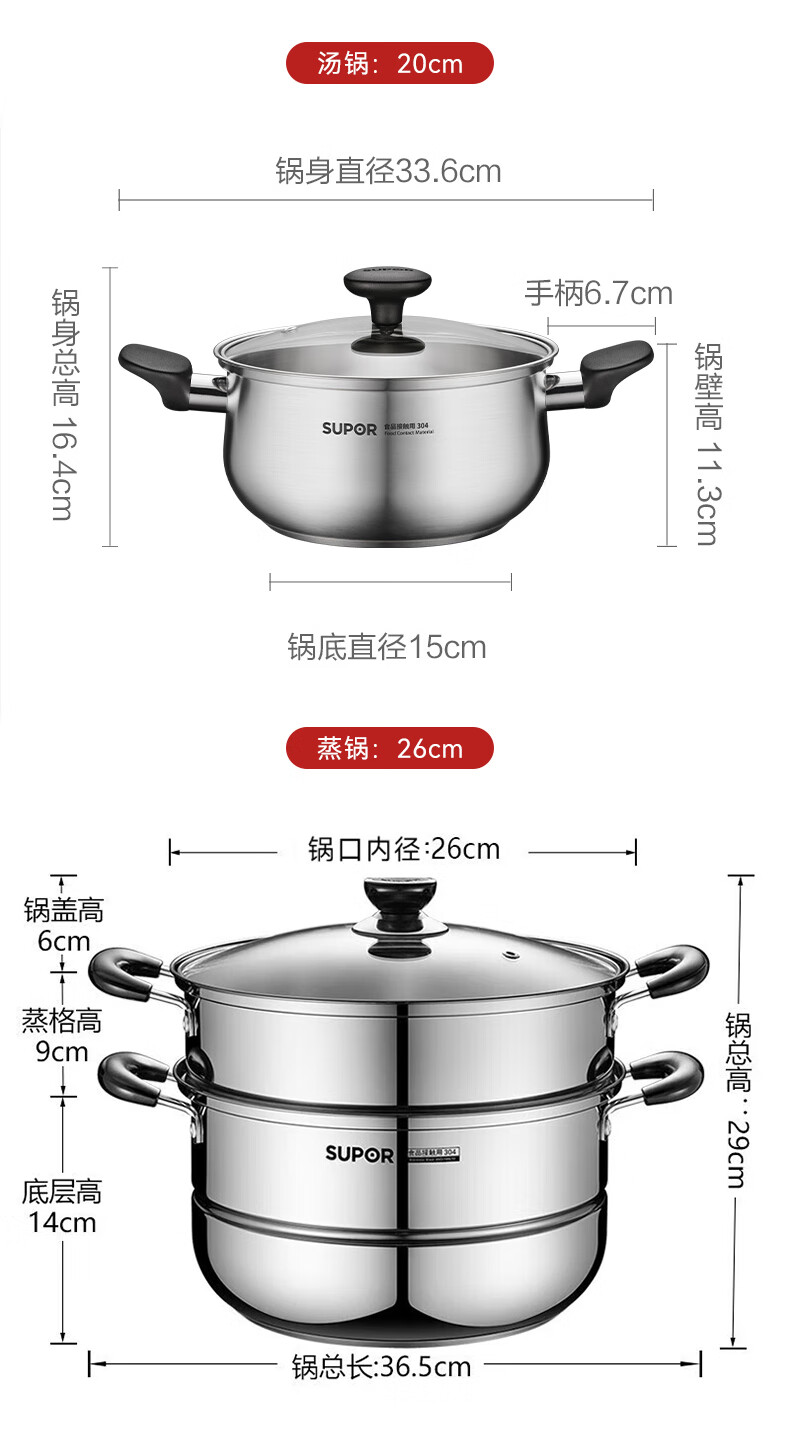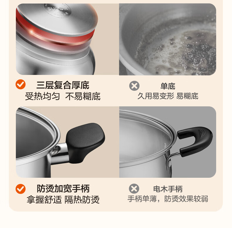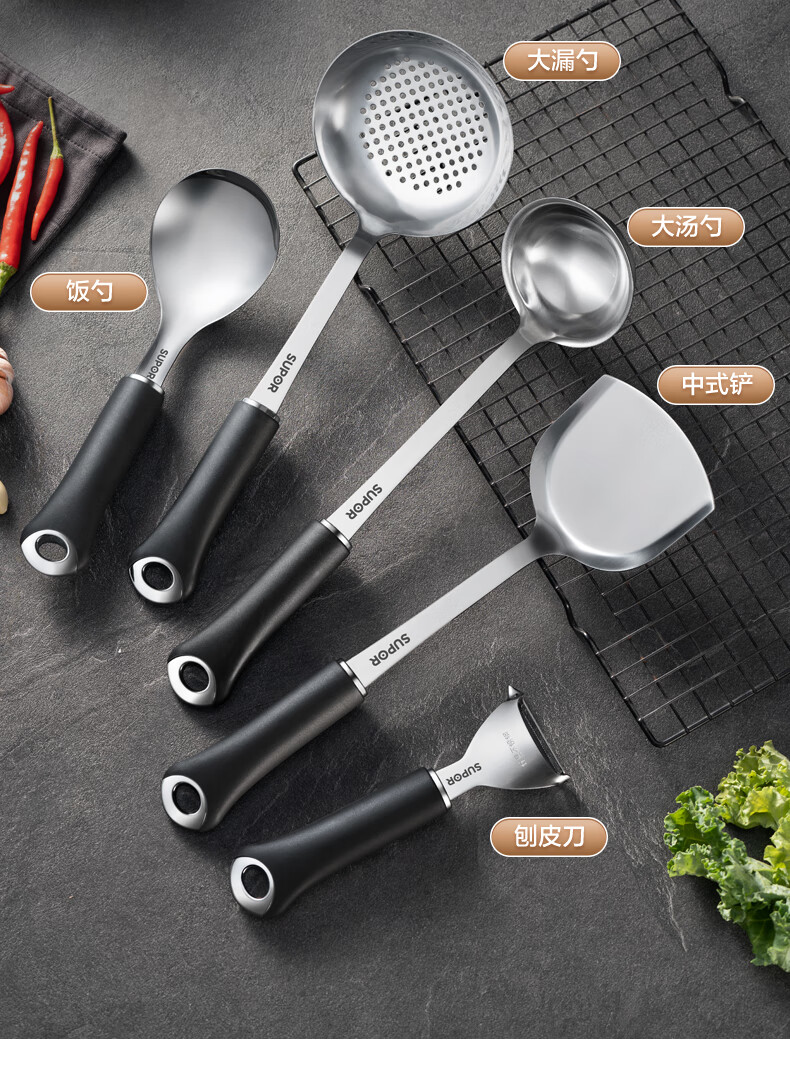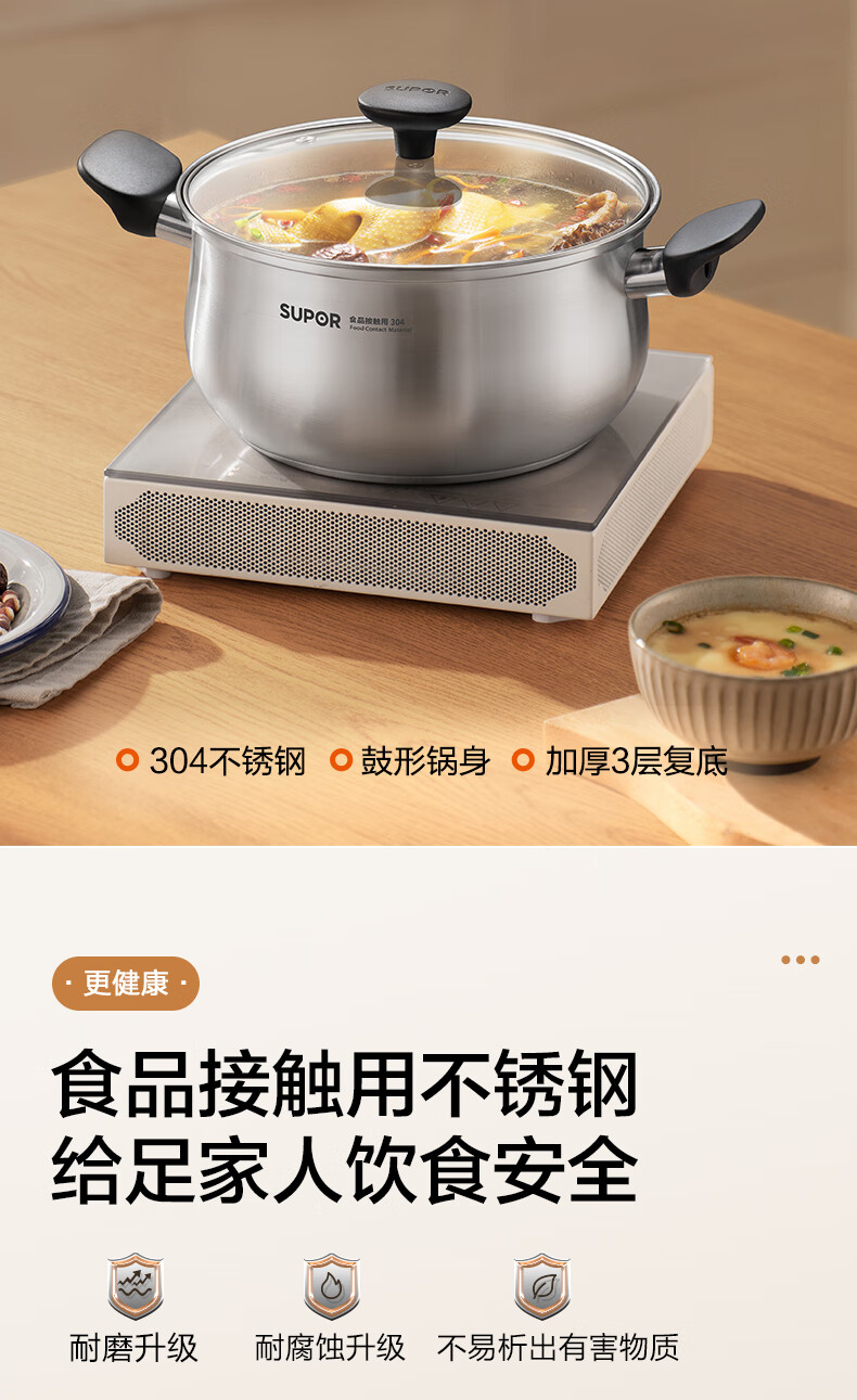 SUPOR uncoated iron pot wok frying pan set frying pan 304 stainless steel stew steamer soup pot pressure cooker stir-fry + fry + soup + steam + spatula + knife 6-piece set