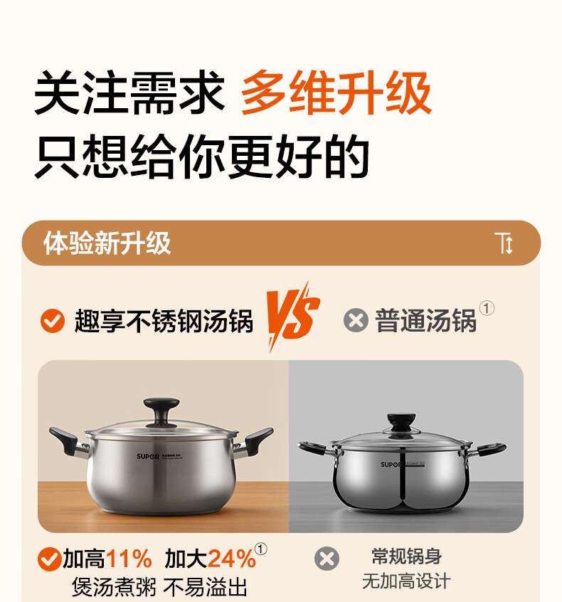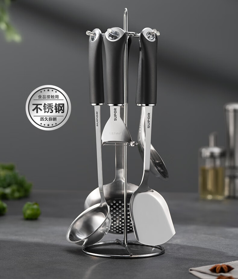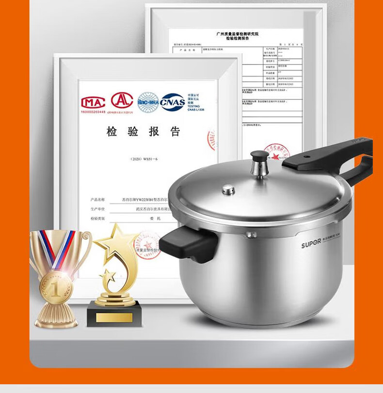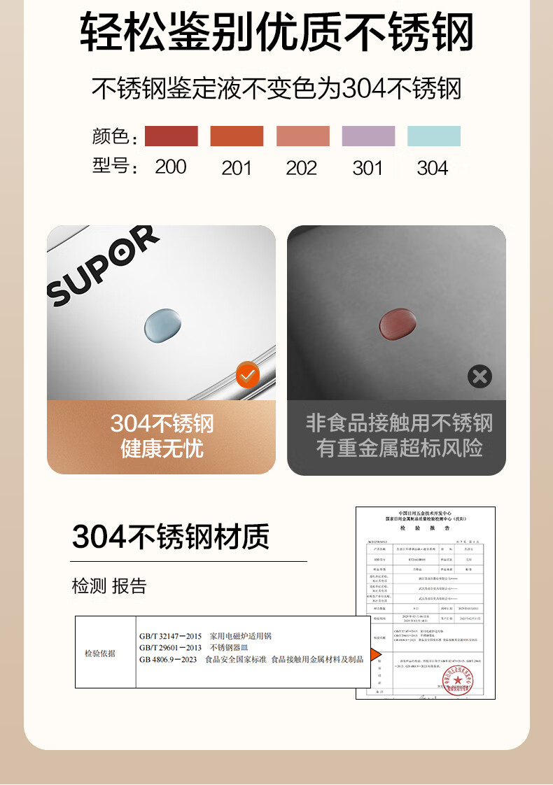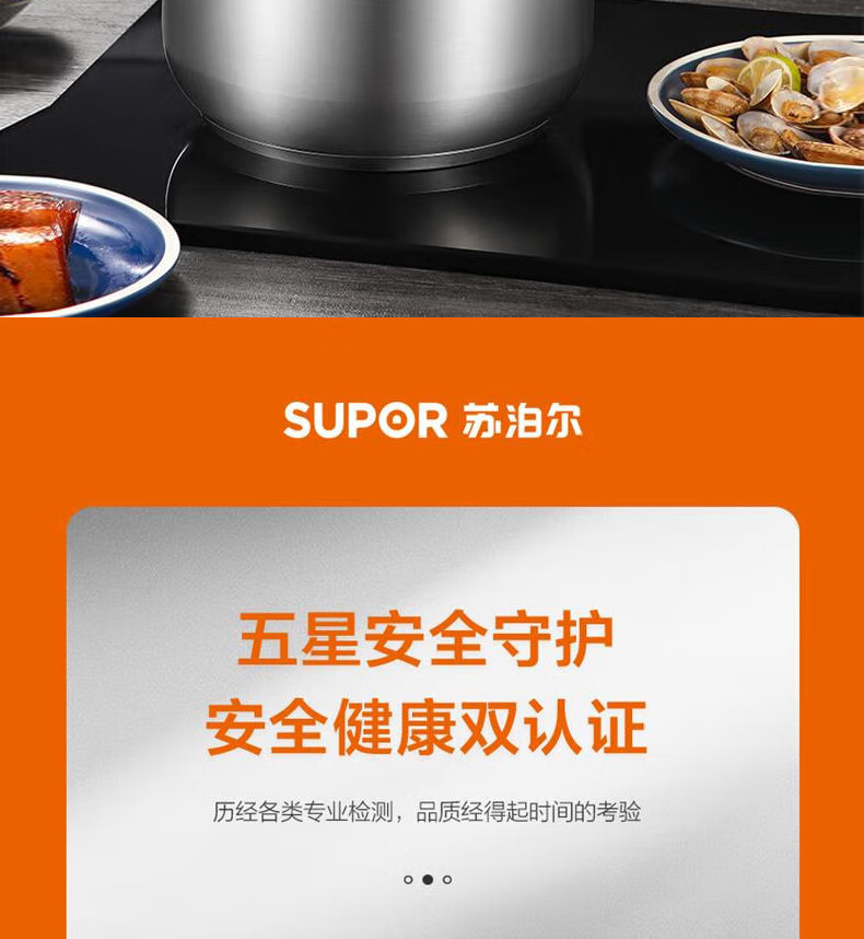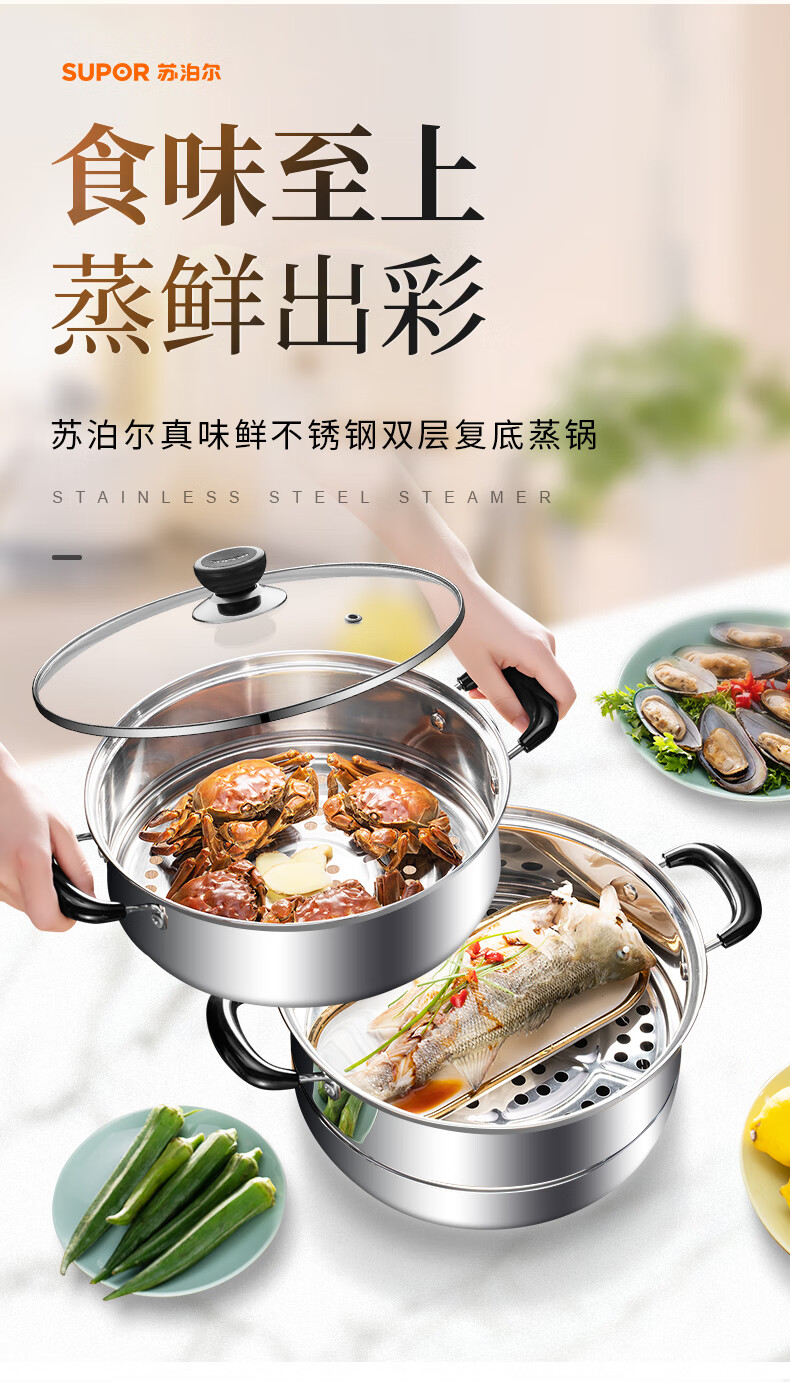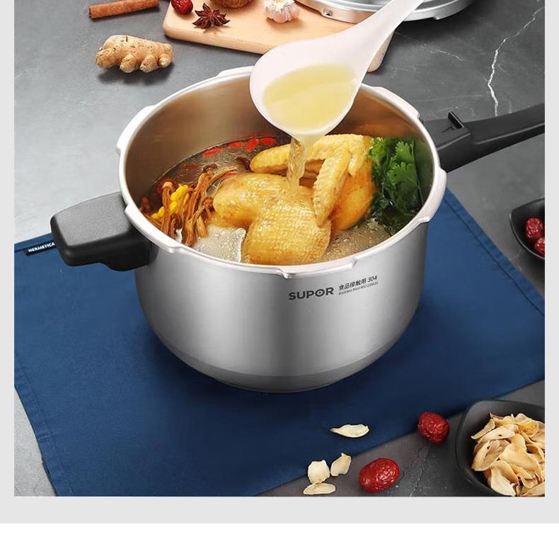 SUPOR uncoated iron pot wok frying pan set frying pan 304 stainless steel stew steamer soup pot pressure cooker stir-fry + fry + soup + steam + spatula + knife 6-piece set