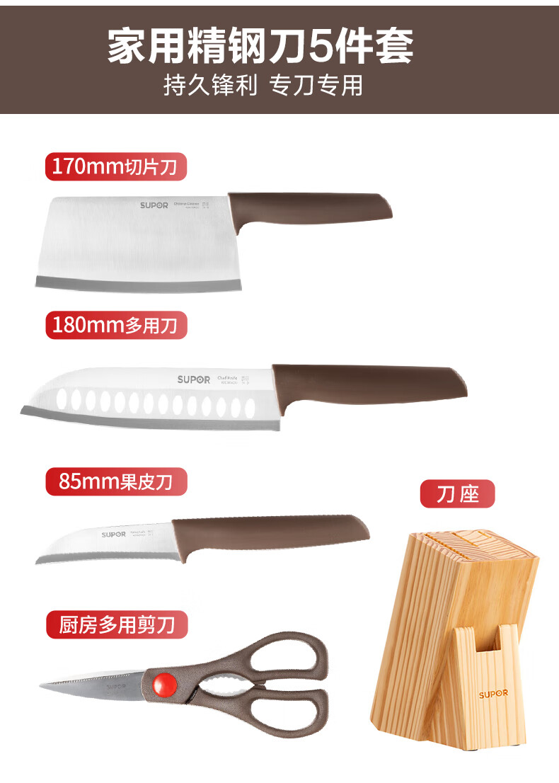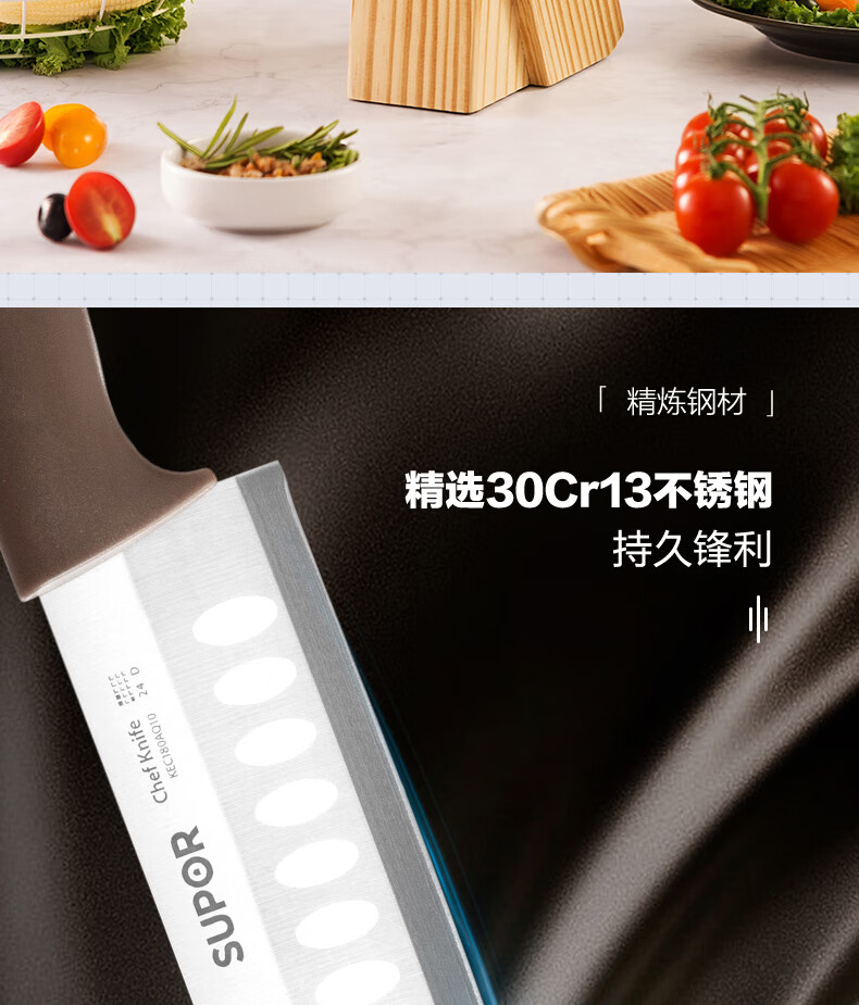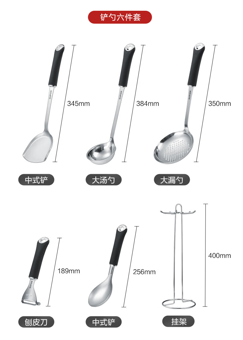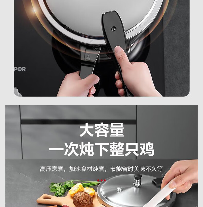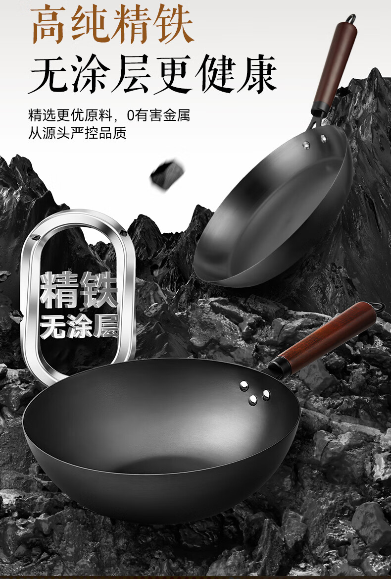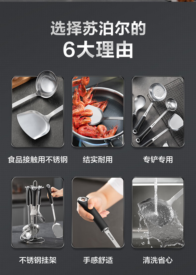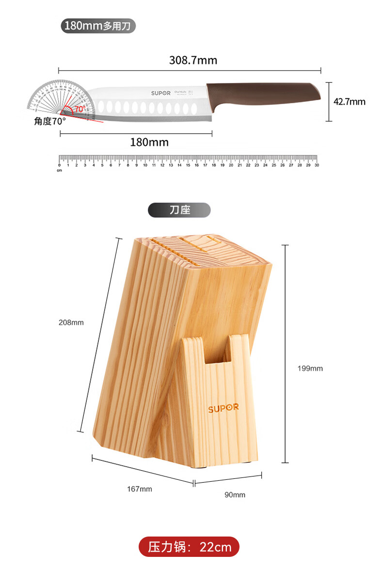 SUPOR uncoated iron pot wok frying pan set frying pan 304 stainless steel stew steamer soup pot pressure cooker stir-fry + fry + soup + steam + spatula + knife 6-piece set