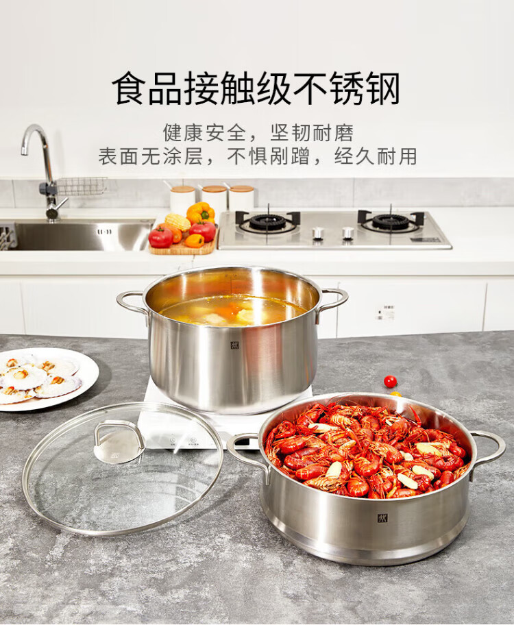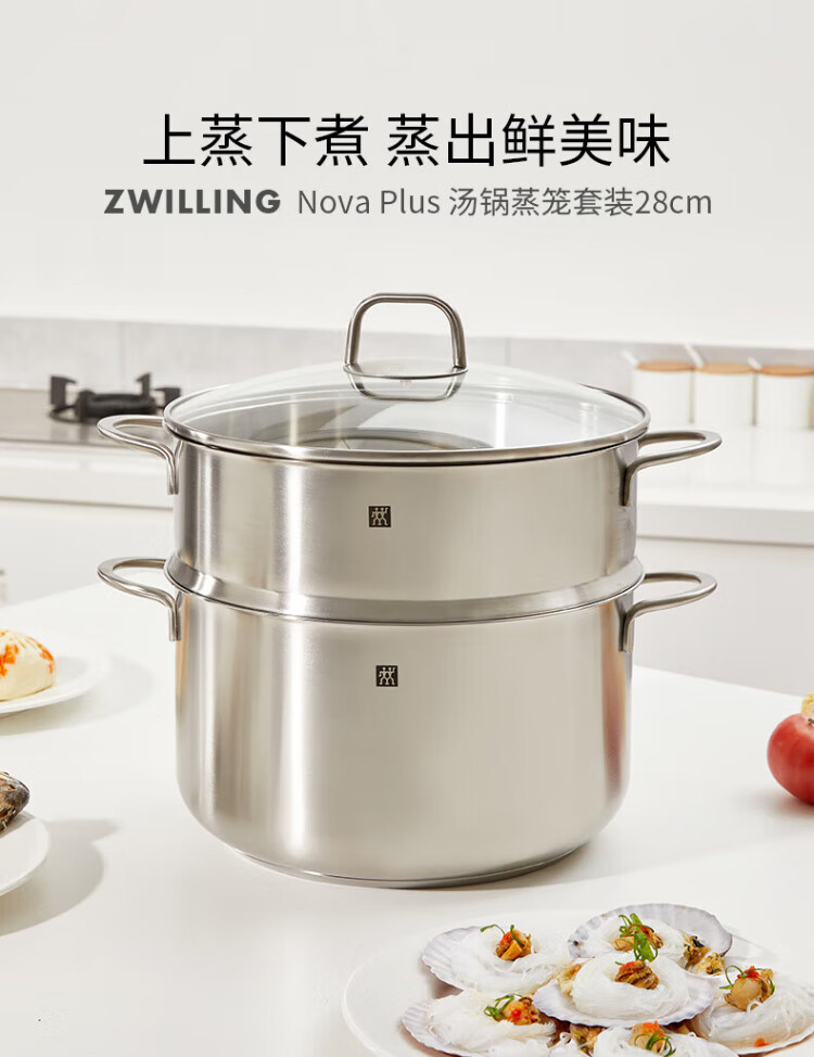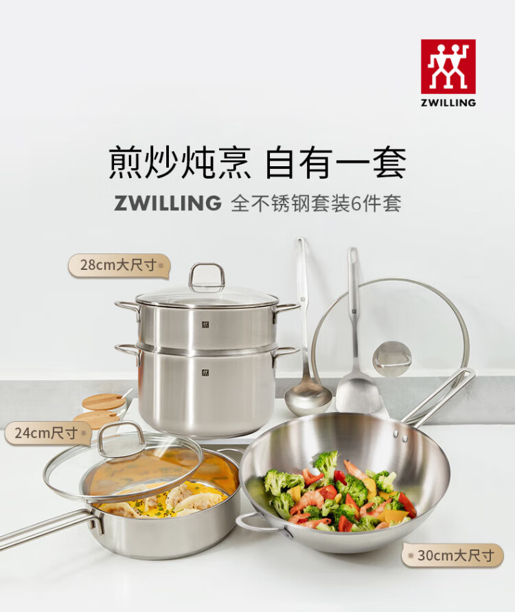 ZWILLING Nova Plus set wok, steamer, soup pot, steamer, frying pan, spatula, pot, spoon, kitchenware set, stainless steel pot, 6-piece set