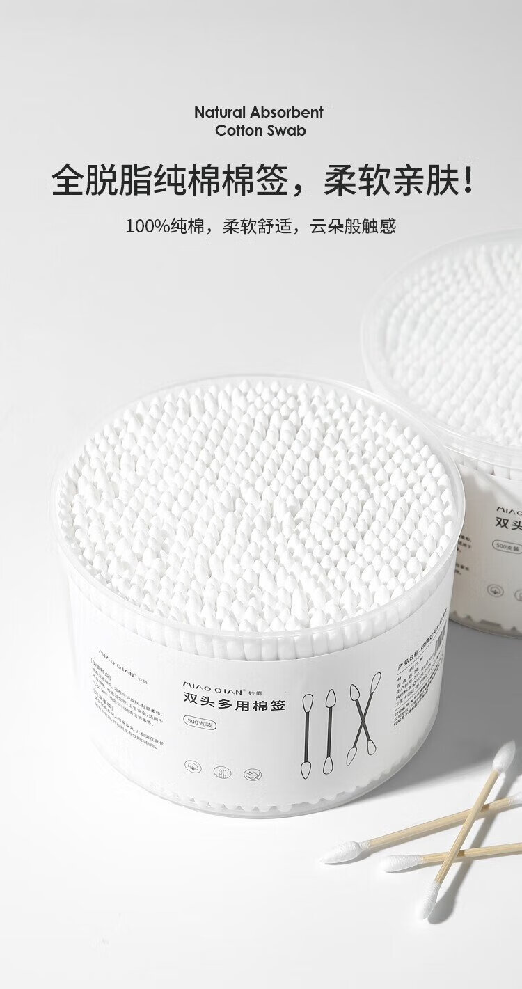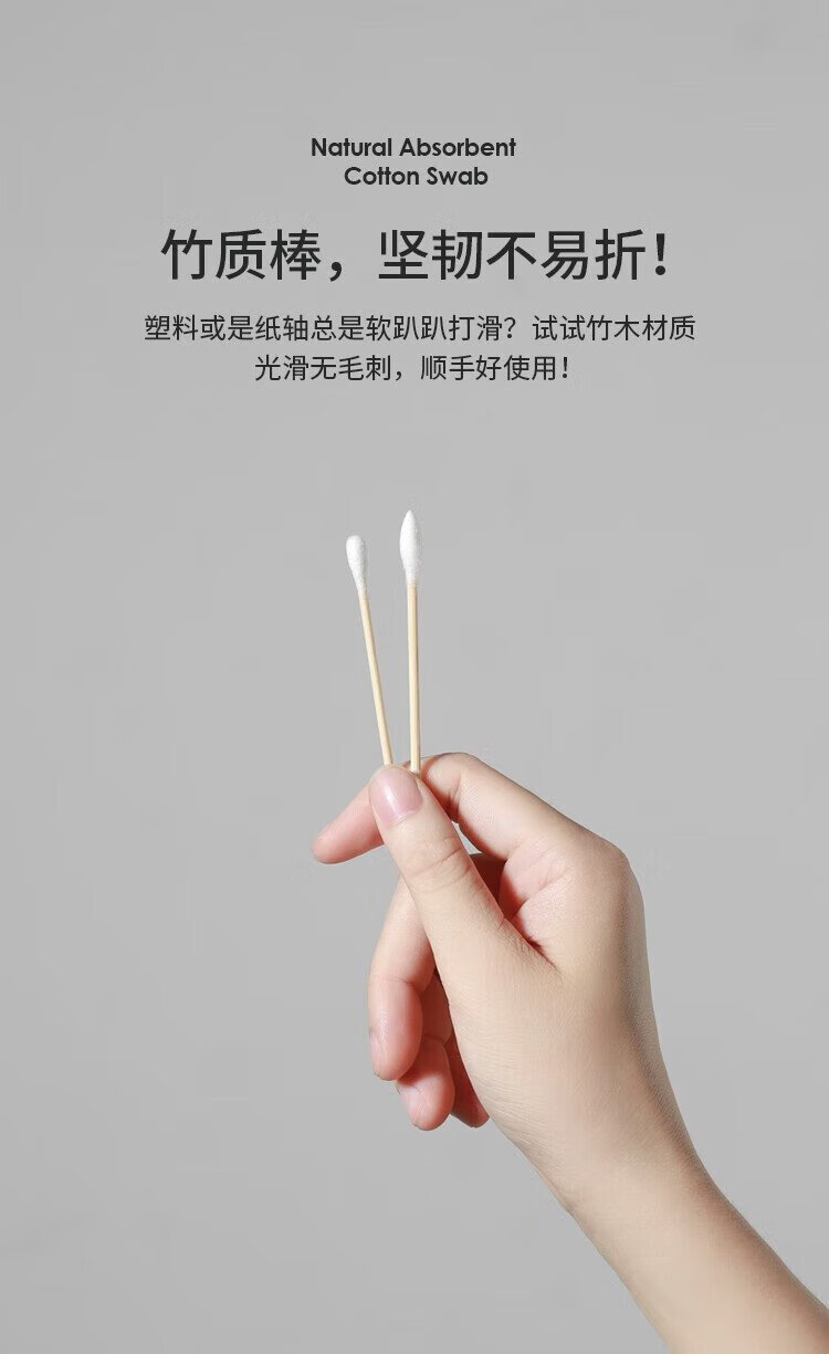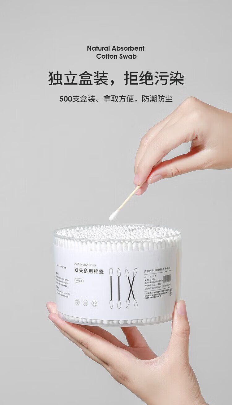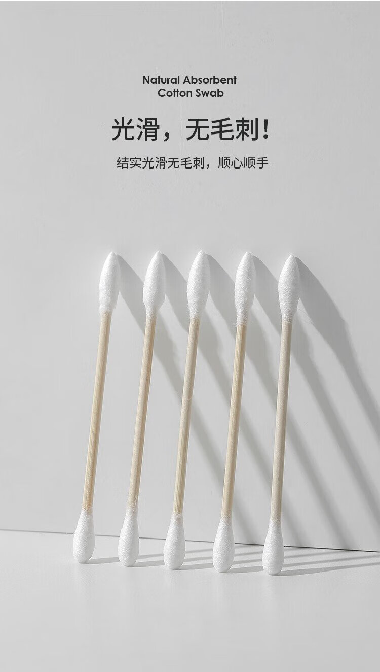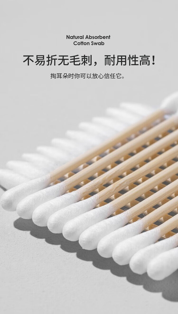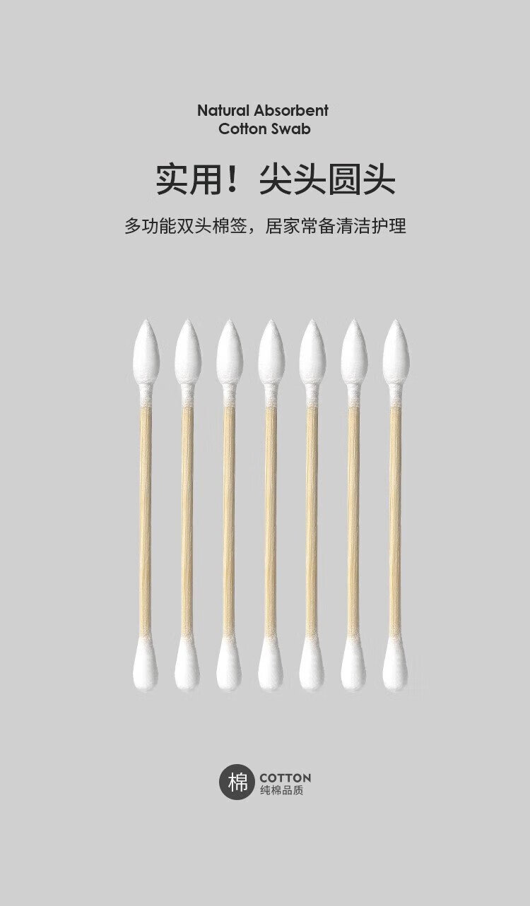 Miaoqian double-ended cosmetic cotton swab stick for ear cleaning in a boxed box for adults, wooden and bamboo sticks, individually packaged, non-shedding, beauty and ear cleaning, regular style, 300 pieces, round head + pointed head