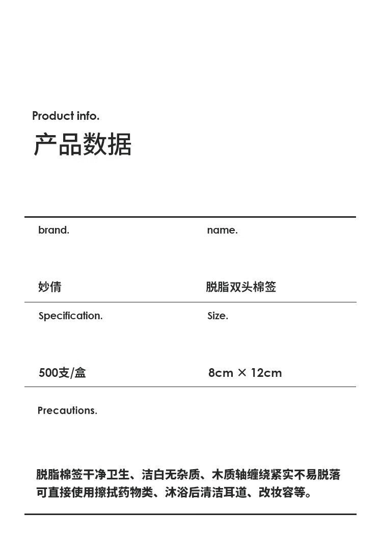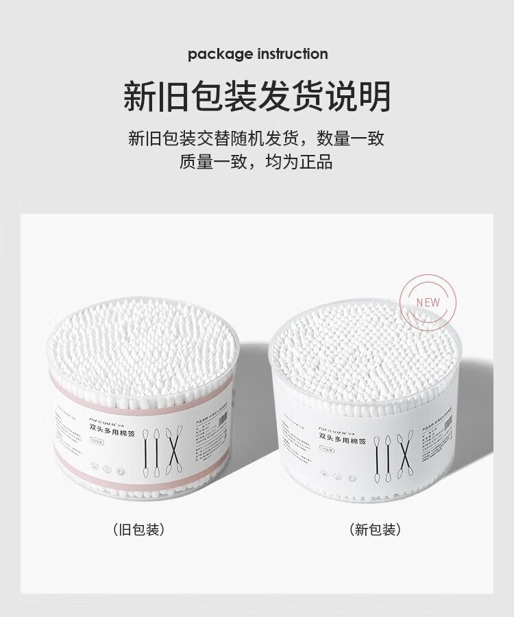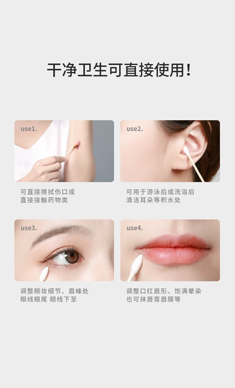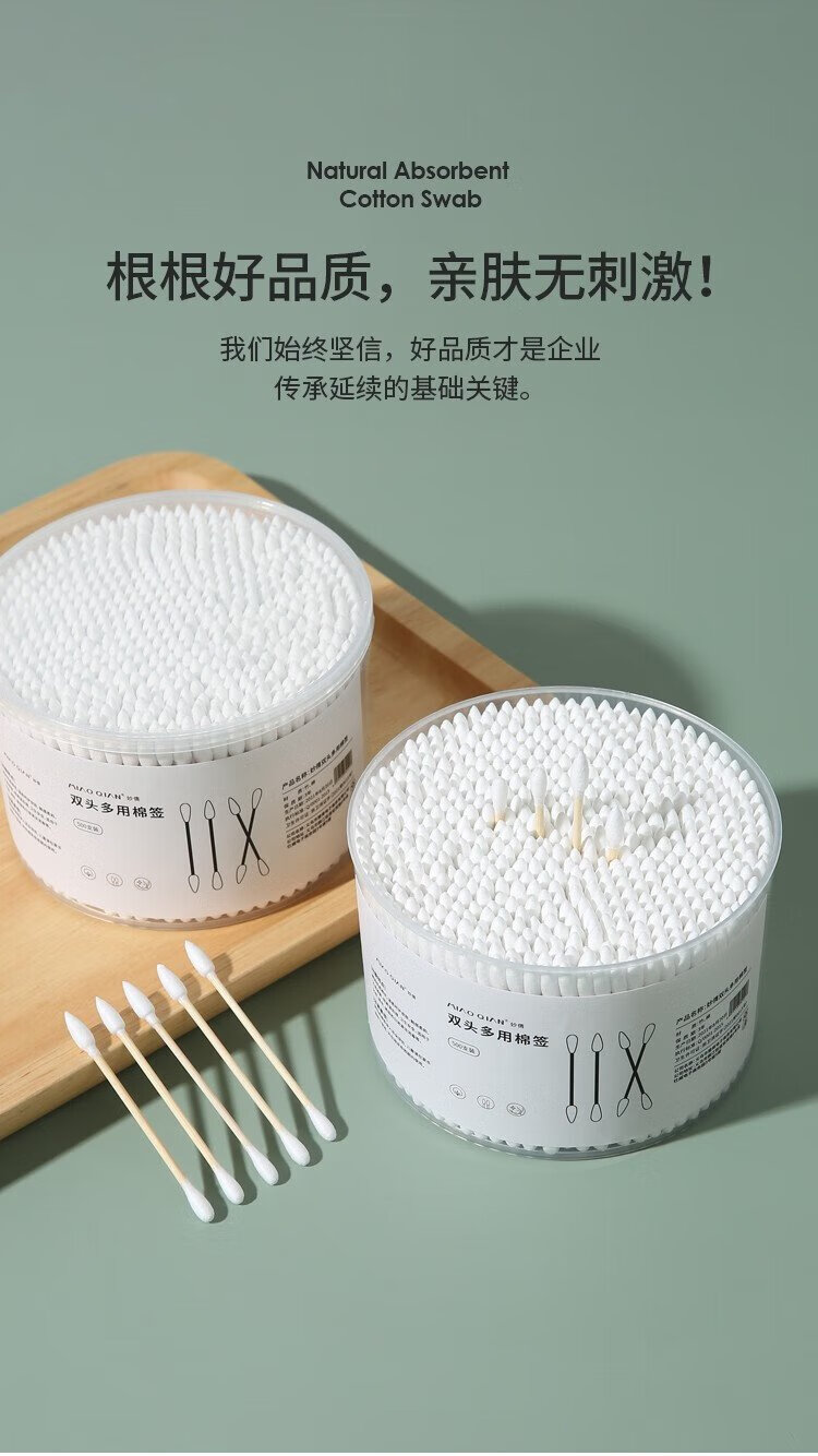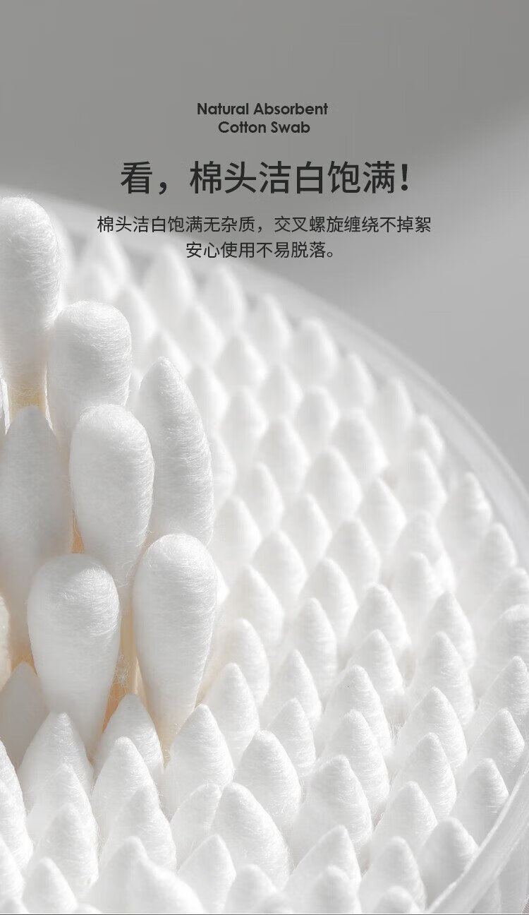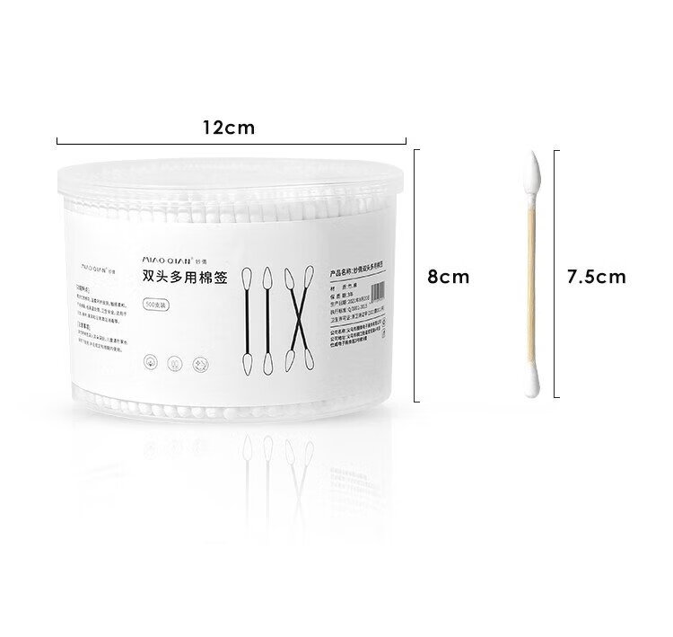 Miaoqian double-ended cosmetic cotton swab stick for ear cleaning in a boxed box for adults, wooden and bamboo sticks, individually packaged, non-shedding, beauty and ear cleaning, regular style, 300 pieces, round head + pointed head