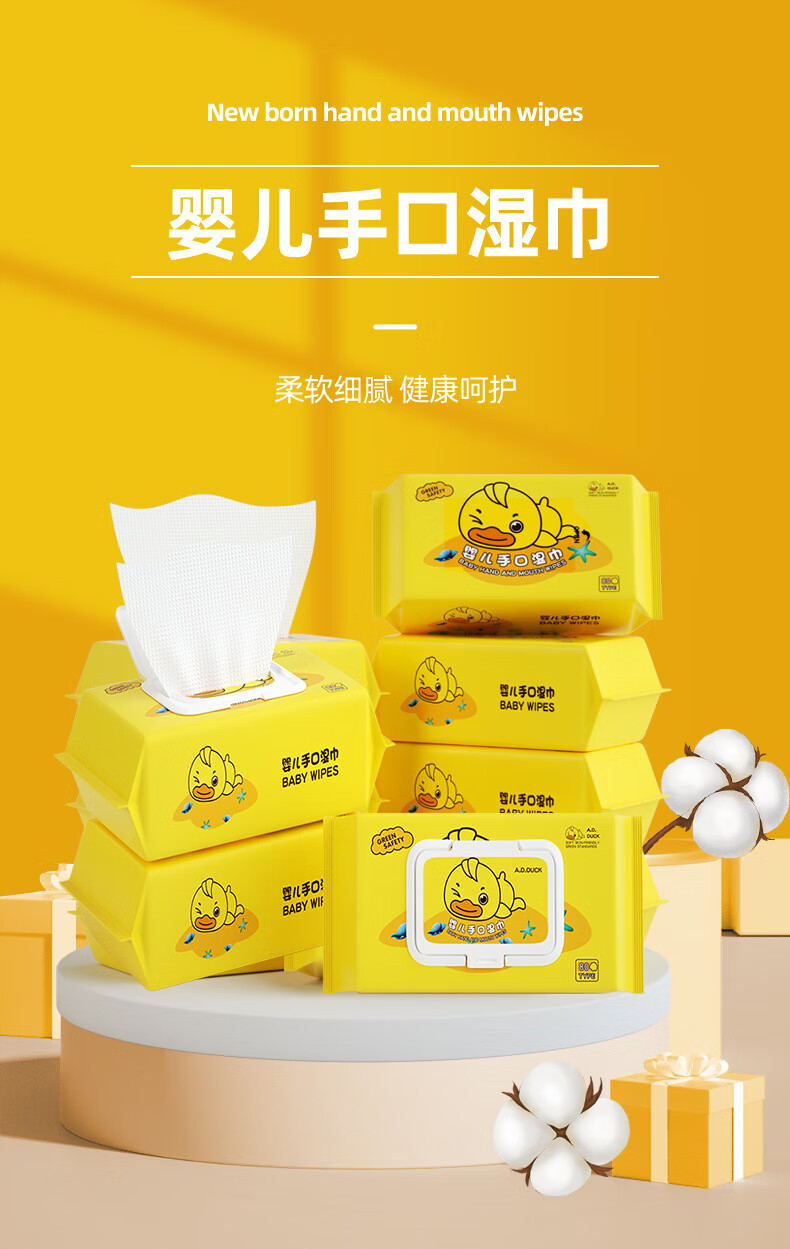 Odo cotton disposable hand and mouth wipes baby adult face cleaning baby wipes children student wipes regular style 55 pumps little yellow duck wipes ~ 1 pack
