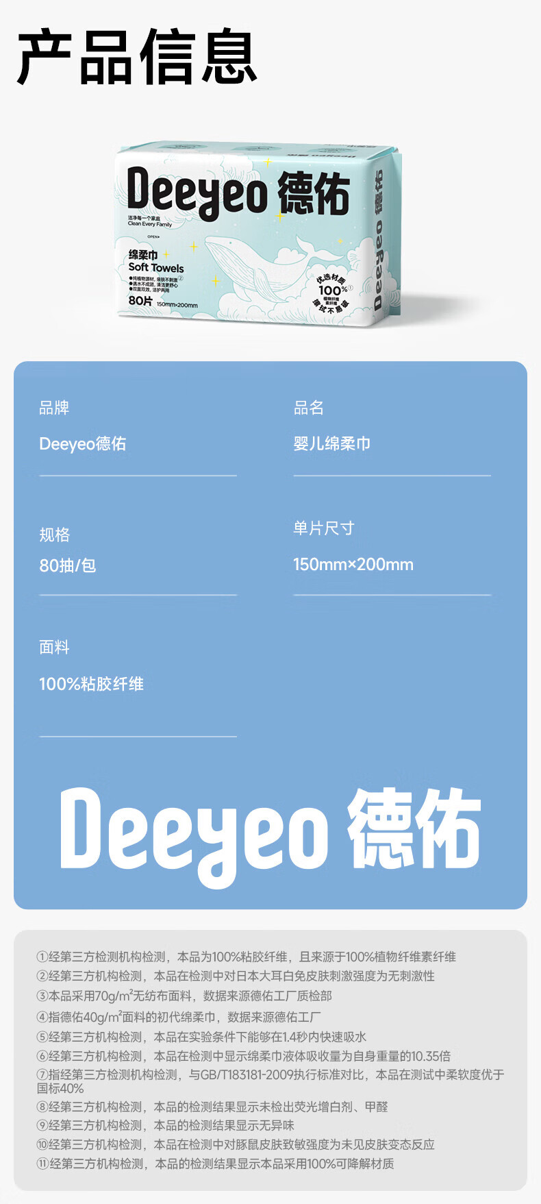 Deyou Baby Soft Towel Disposable Face Towel Skin Friendly Soft Face Towel Extracted Wet and Dry Makeup Remover Cleansing Towel Regular Style 80 Draws *1 Pack Early Adopter Experience Pack