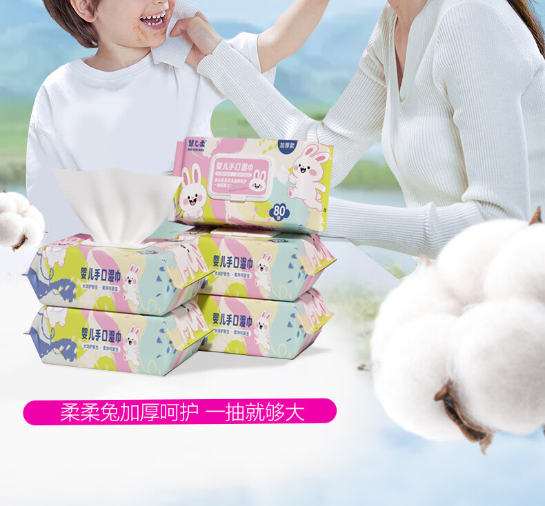 Huixinrou Baby Hand and Mouth Special Wet Wipes Thickened Cosmetic Cotton Household Large Pack Toddler Newborn Baby Butt Wet Wipes Thick Type 80 Pumps *1 Pack