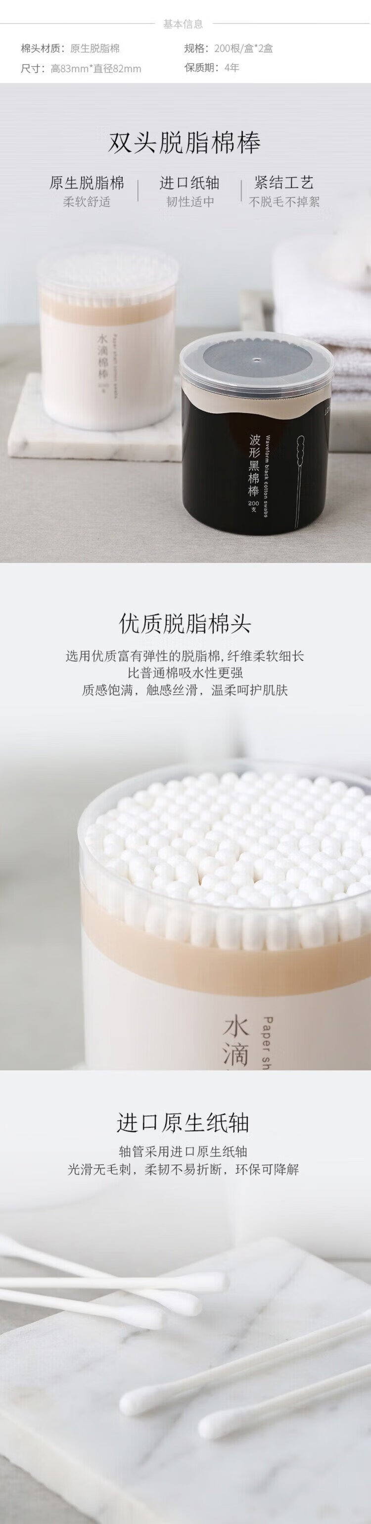 Made in Tokyo, double-headed water drop cotton swabs, 200 pieces * 2 cans, ear cotton swabs, paper shaft, makeup cotton swabs, spiral head cleaning cotton swabs