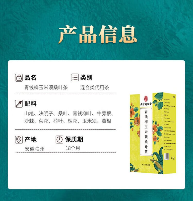Nantong Sihai Nanjing Tongrentang Green Qianliu Corn Silk Frosted Mulberry Leaf Tea Burdock Root Hawthorn Thirty Tea Bags