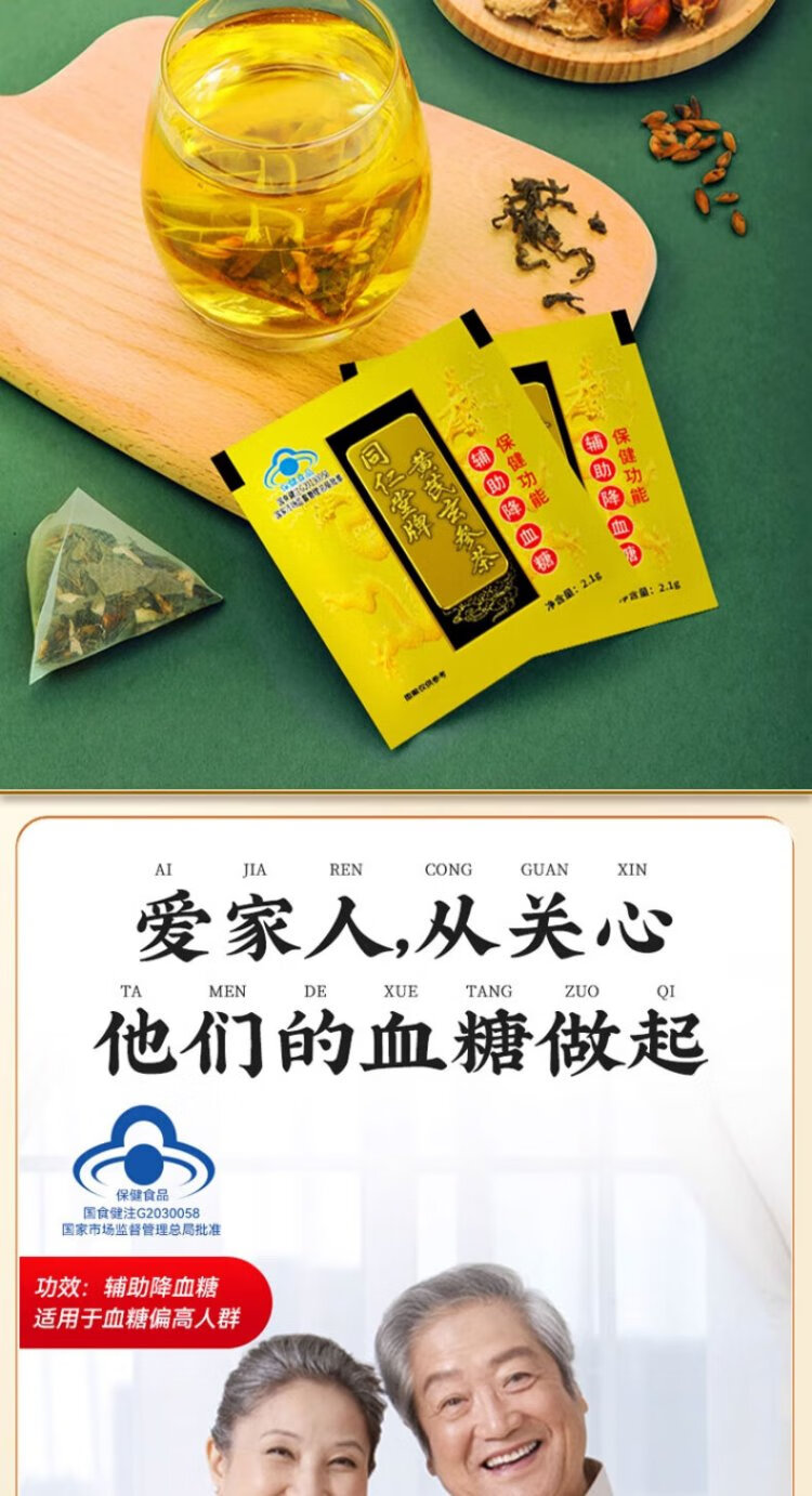 Beijing Tong Ren Tang's tea to assist in lowering blood sugar, corn silk, green money, willow, mulberry leaf tea and dried bitter melon slices to lower blood sugar z 8 boxes 2.1g*1 bag