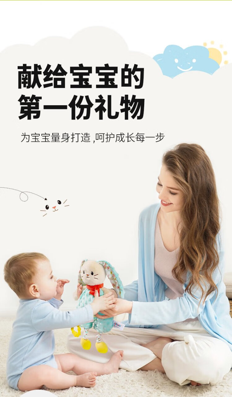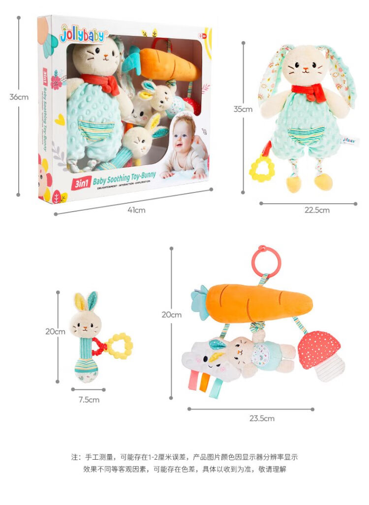 Jollybaby Spielzeug für Neugeborene, Handrassel, Beißring, Puppe, Kaninchen, Komfortserviette, Geschenkbox-Set, Kinder, Vollmond-Geschenk