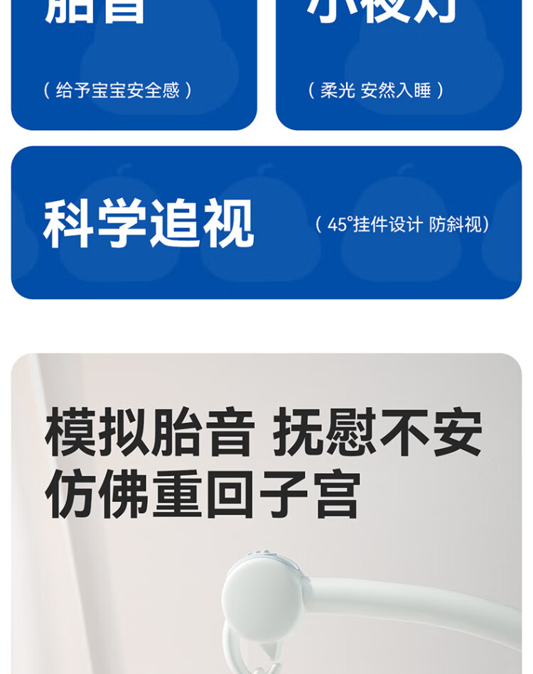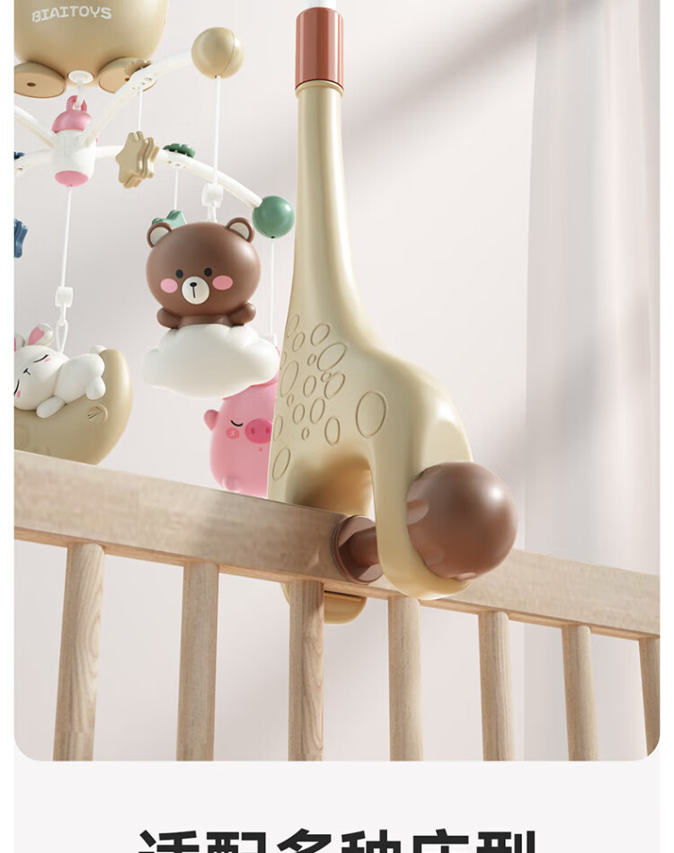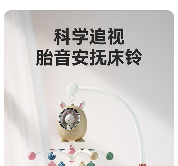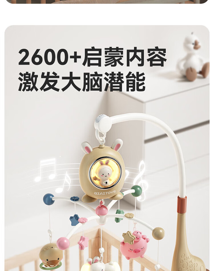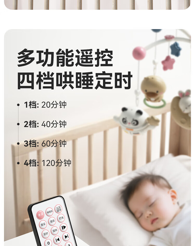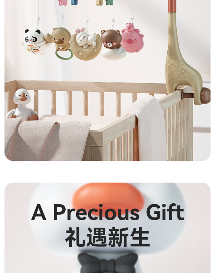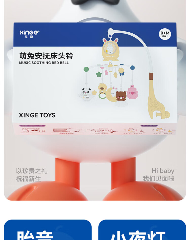 欣格婴儿床铃哄睡神器摇铃声光床头铃安抚礼盒可充电遥控黄色生日礼物