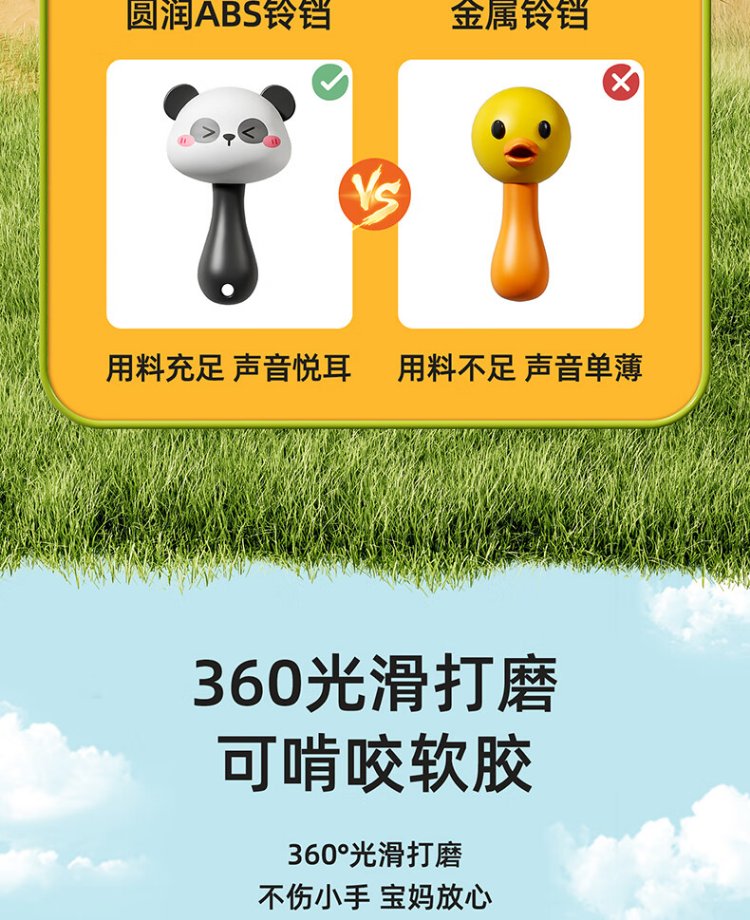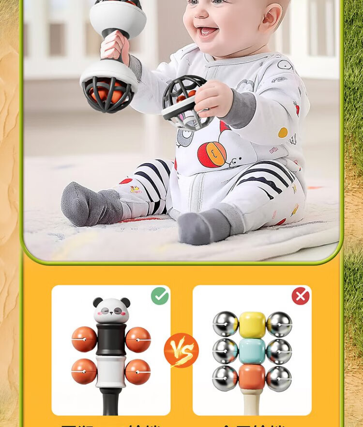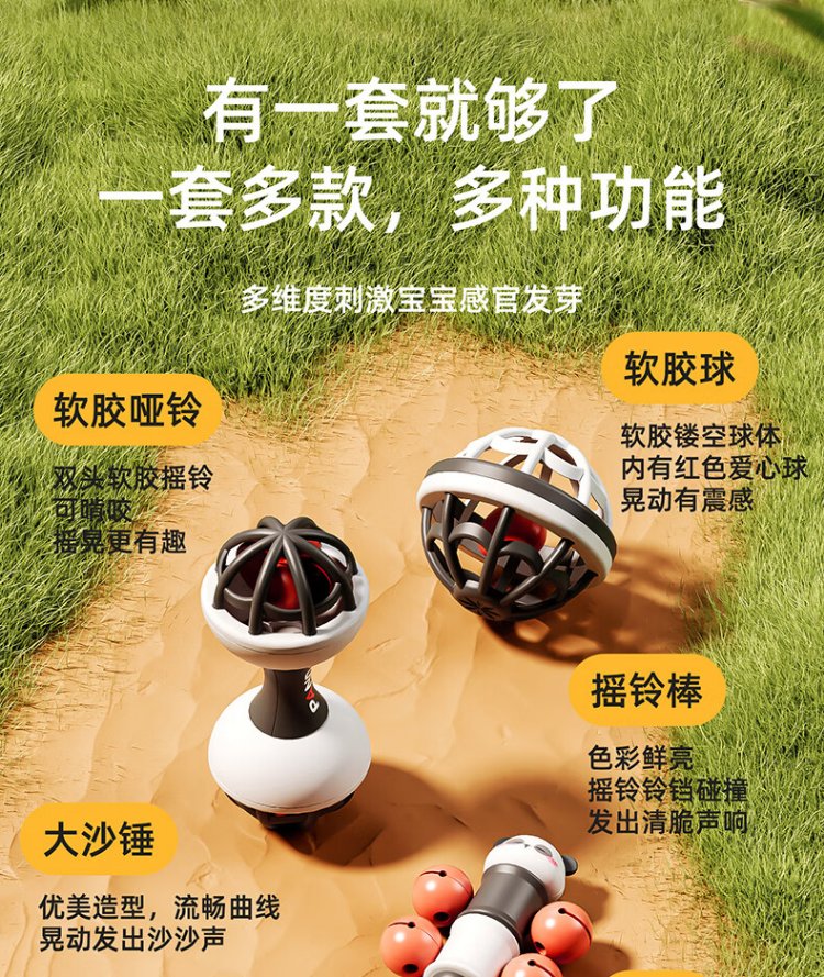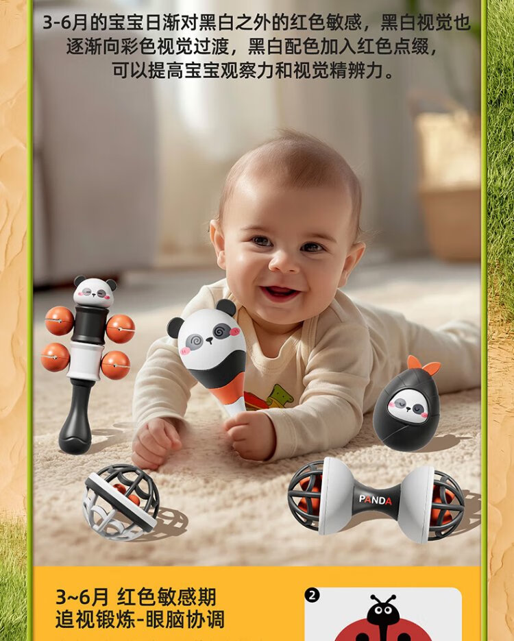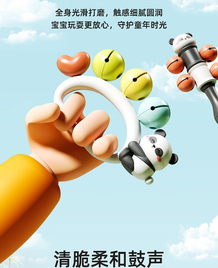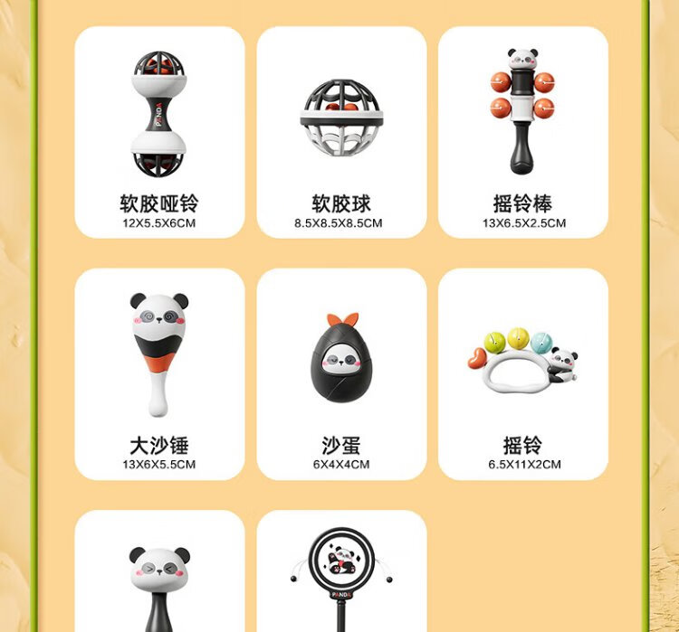 迪漫奇手摇铃礼盒婴幼儿玩具新生牙胶幼龄宝宝安抚满月生日礼物熊猫摇铃