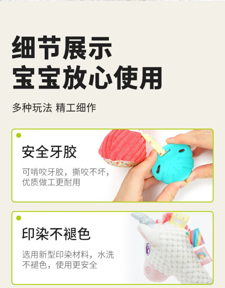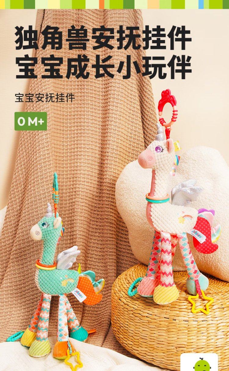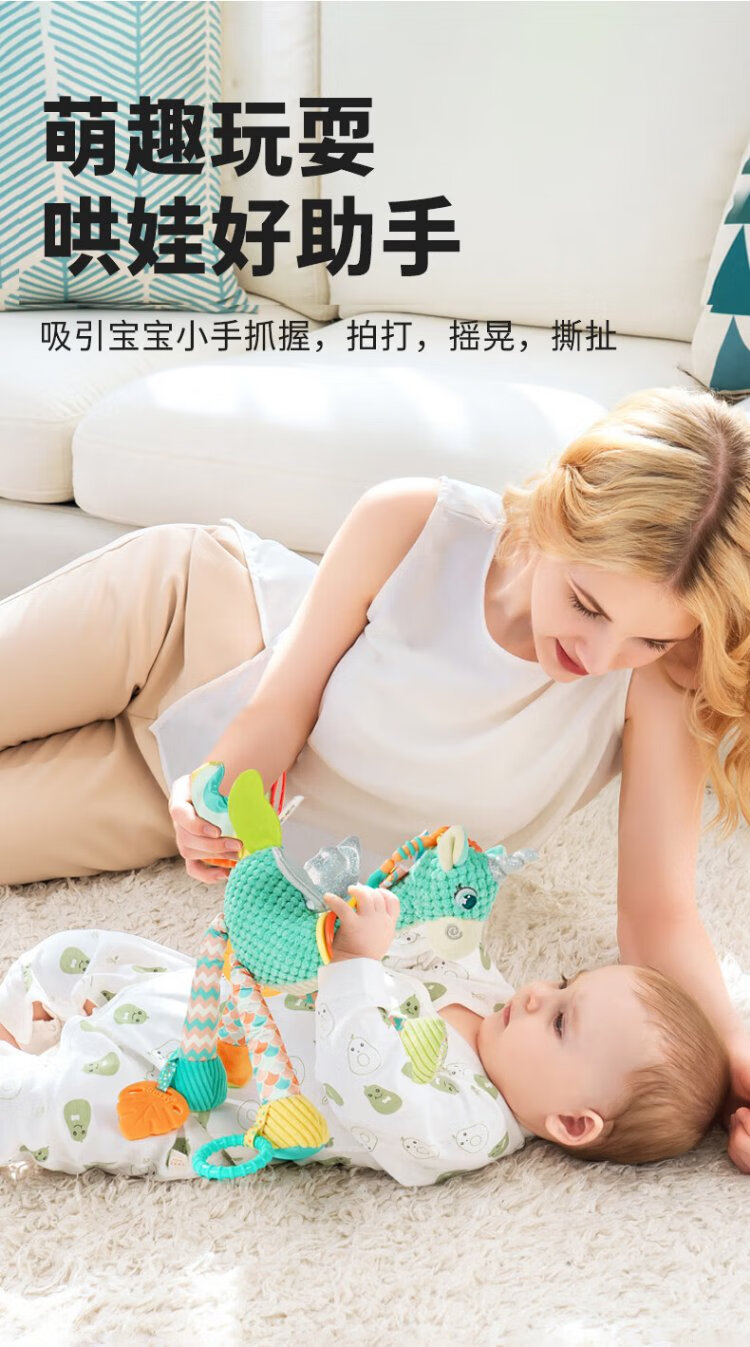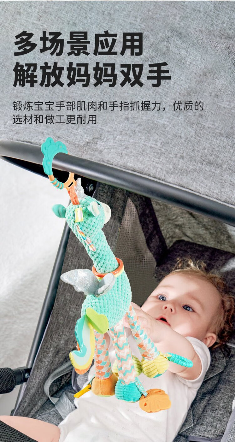 jollybaby婴儿玩具挂件床铃摇铃安全座椅1岁宝宝安抚玩具 浅湖蓝独角兽挂件
