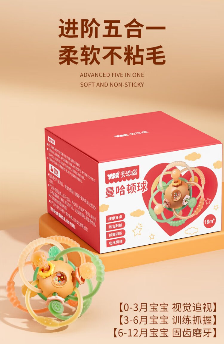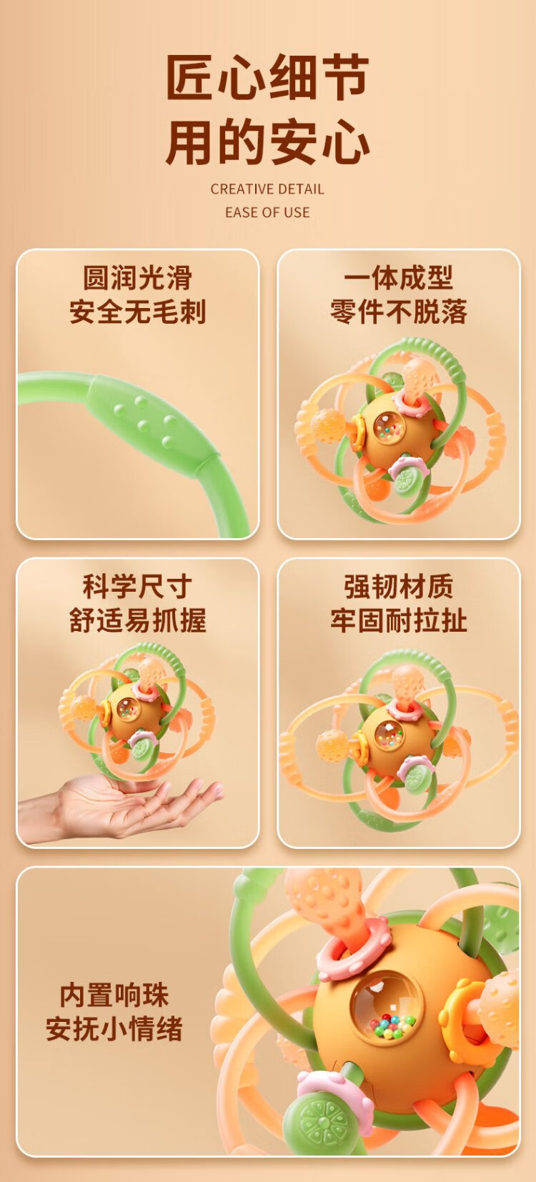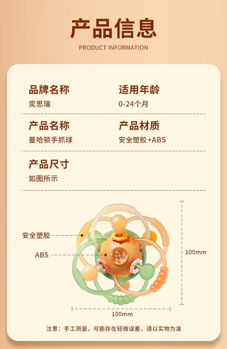 Yisirui Manhattan main balle bébé 0-6 mois et 1 an peut mâcher un anneau de dentition oral de qualité alimentaire jouet apaisant hochet