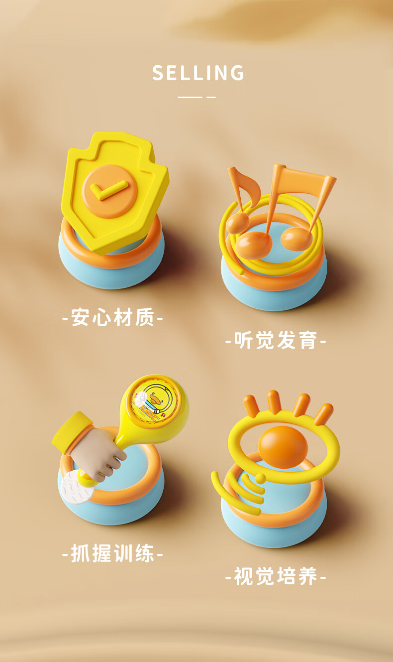 OLOEY红色沙锤婴儿新生儿抓握听力追视训练玩具可啃咬早教手摇铃小宝宝 婴儿抓握小沙锤*2