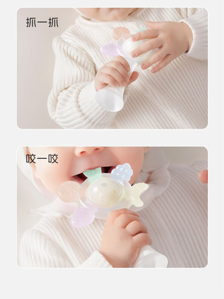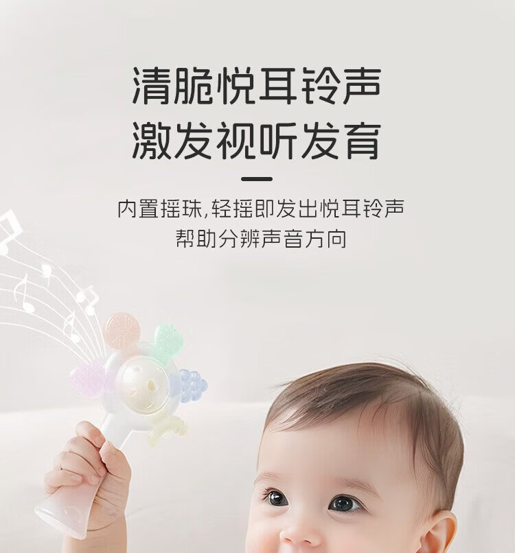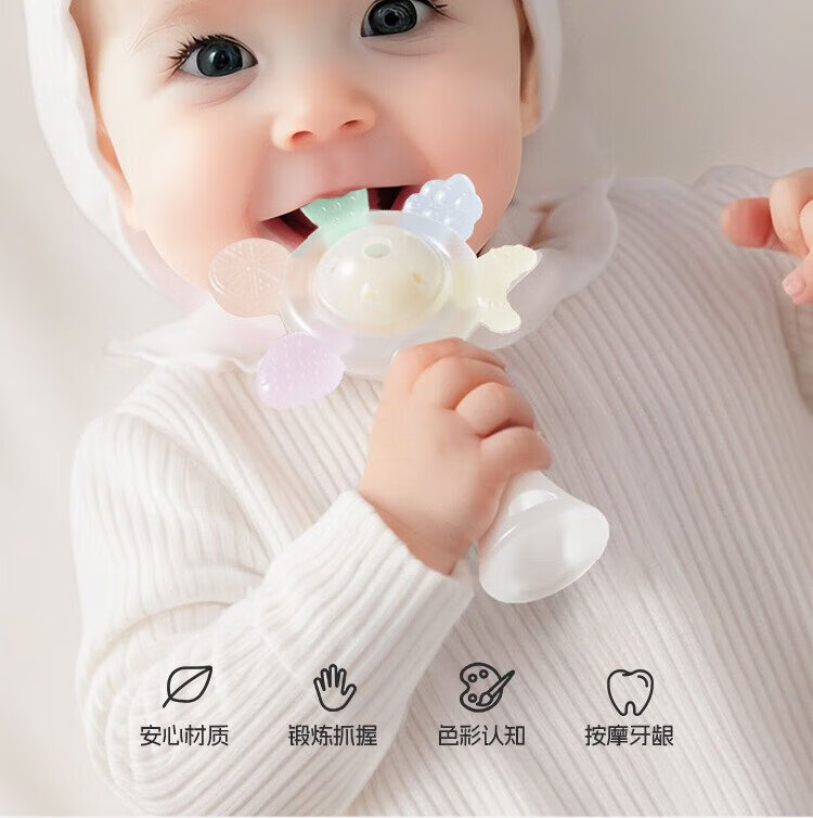 Dr. Ma's Baby-Beißring, Handrassel, Silikon, Baby kann Backenzähne beißen und Beißmusik, Handrassel, Mundspielzeug, weiß