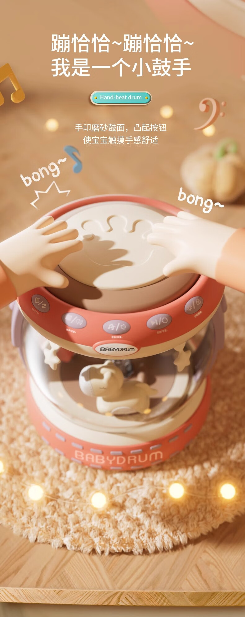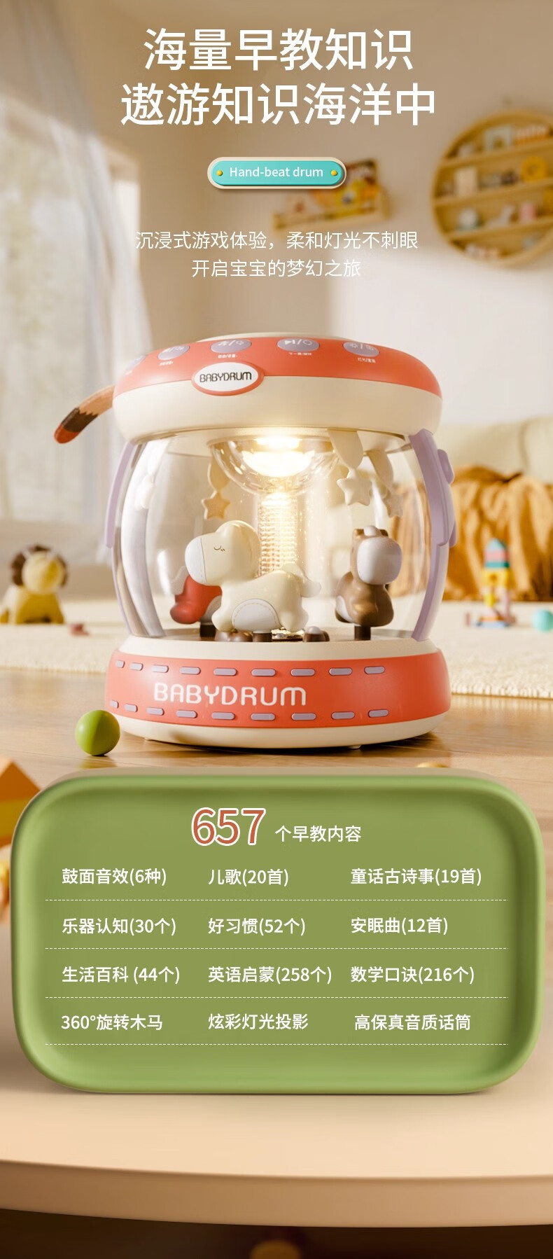 DADDY GUARD Jouet pour bébé de 0 à 1 an, cadeau d'anniversaire pour fille d'un an, tambour à main éducatif pour bébé de 0 à 6 mois, fournitures pour bébé, tambour à main multifonctionnel, version de luxe, chargement USB + microphone + Bluetooth + plus de 600 types de contenu d'éducation précoce