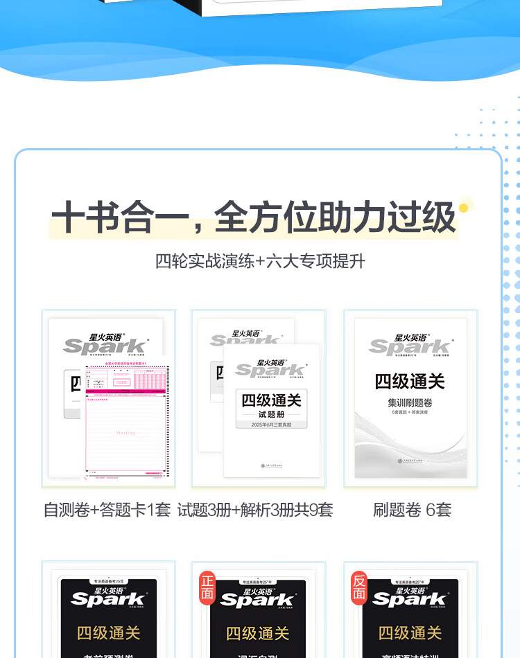 Xinghuo enthält echte Testpapiere für Juni 2025. Xinghuo Englisch CET-4 echte Testpapiere zur Vorbereitung auf die CET-4-Prüfung im Dezember 2025. Echte CET-4-Testpapiere zur Vorbereitung auf das College-Englisch. Echte CET-4-Testpapiere. CET-4-Vokabelbuch. Englische Hörübersetzung. Materialien zur Vorbereitung auf den CET-4-Englischtest. Wesentliche Materialien für die Prüfungen CET-4 und CET-6 2025. CET-4-Pass.