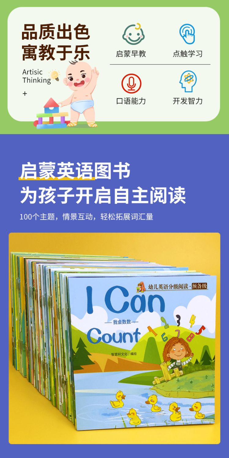 幼儿英语分级阅读60册儿童英语绘本启蒙早教英文绘本有声伴读书籍 100本入门级+预备级 无规格