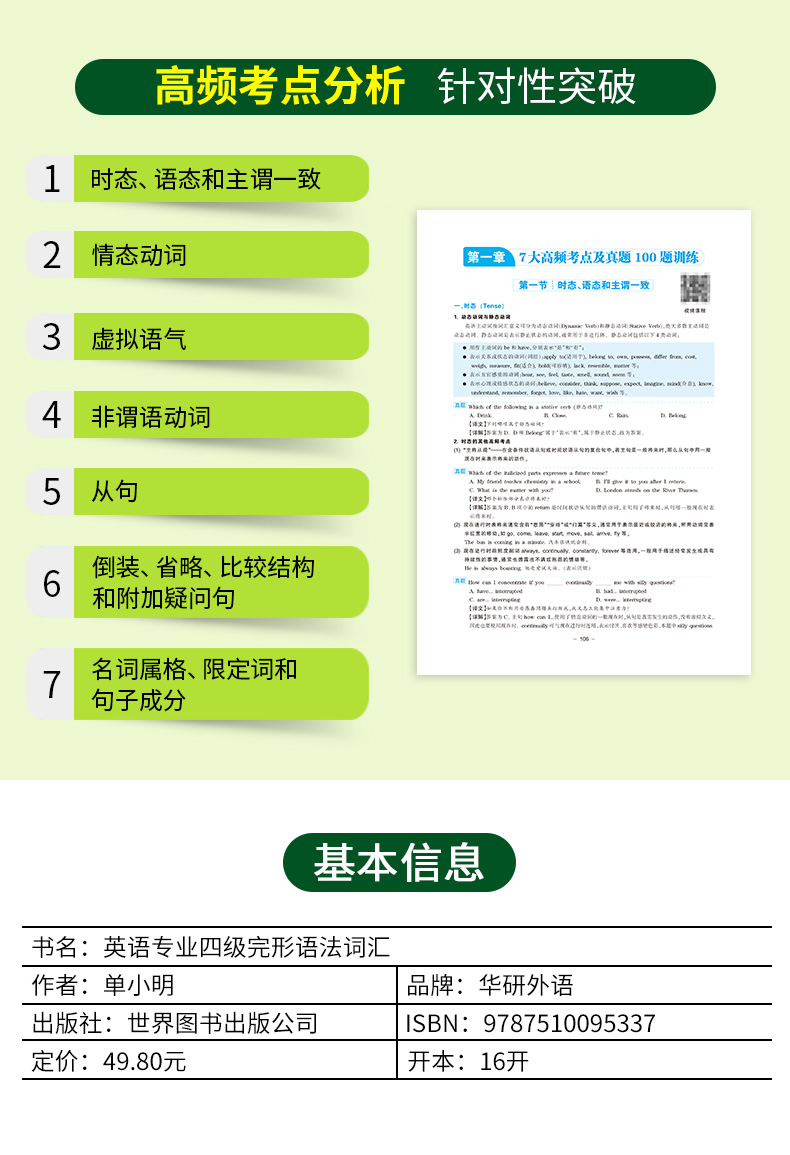 Echte Vorbereitung auf das Huayan Foreign Language College Level 4 Komplettes Grammatik- und Wortschatz-Spezialtraining 2026 mit 1300 Fragen. Der komplette Satz des Englisch-Hauptfachs Level 4 kann mit den Hörtestaufgaben der Vorjahre kombiniert werden.