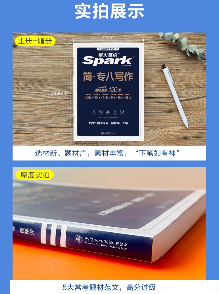 Echtes Xinghuo English Professional Grade 8 Writing Vorbereitungsset für das Xinghuo English Major Grade 8 Writing 2026. 120-teiliges Spezialtrainingsset, das mit dem Special 8 Vocabulary Test Reading and Listening Book verwendet werden kann
