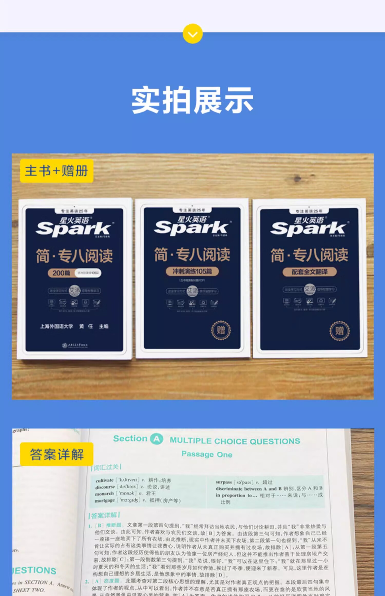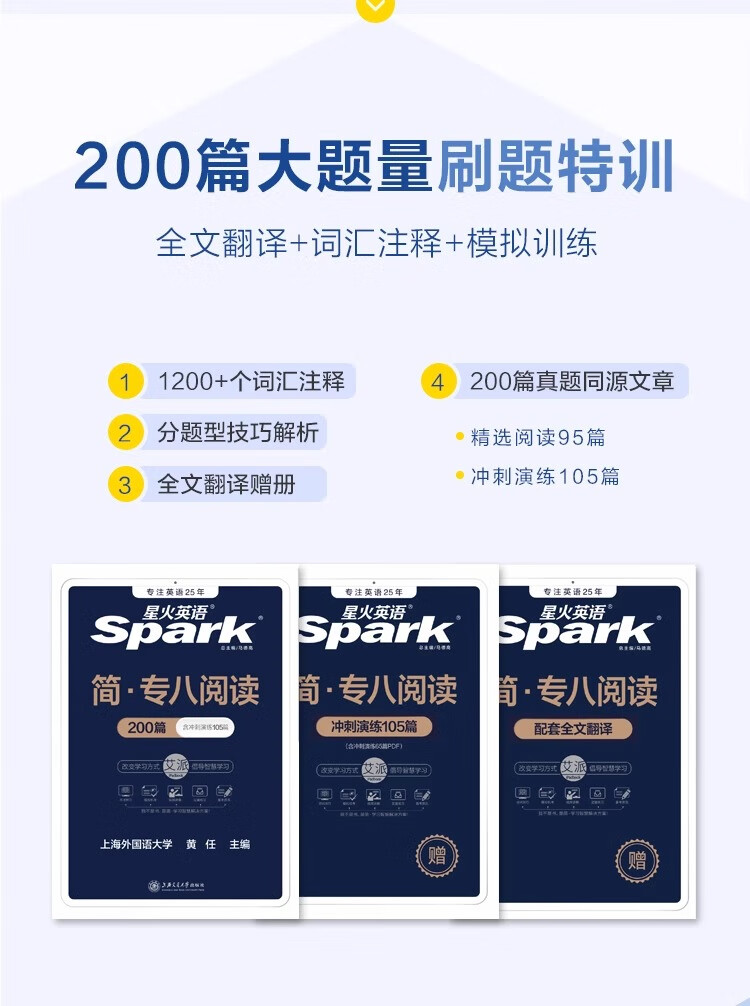 Spark English CET-8 echte Prüfungsvorbereitung 2025, vollständiger Satz an Materialien, Grammatik und Vokabular, Wortbuch, Lesen, Hören, Hören, Fehlerkorrektur, Übersetzung, spezielles Training, tem8 Englisch CET-8 Testpapier, frühere Jahre, echter Test, Leitfaden, Simulationstestset, spezielles 8-Lesen
