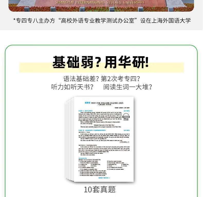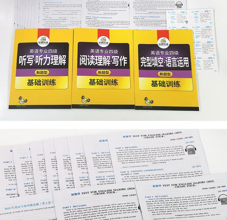 Huayan Foreign Languages ​​​​2026 Specialty 4 Real Exam Questions Guide Prüfungspapiere Upper Mandarin University TEM4 einschließlich Specialty 4 English Major Real Examination Papers für Level 4 einschließlich Lesen, Hören, vollständige Grammatik, Vokabeln und Schreiben