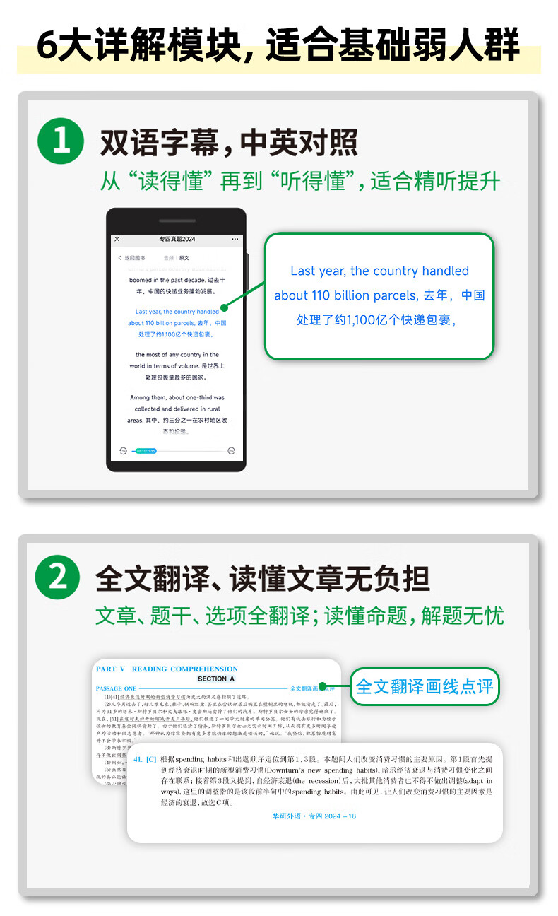 Huayan langue étrangère anglais niveau majeur 4 formation aux tests réels préparation à l'examen de langue étrangère de Shanghai 2026 nouveau mode de dictée 10 séries de questions de test réelles + 6 compétences spécialisées majeures traduction de texte intégral test réel salle de test son original, sous-titres bilingues simultanés, base faible utilisation Huayan