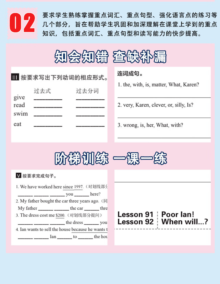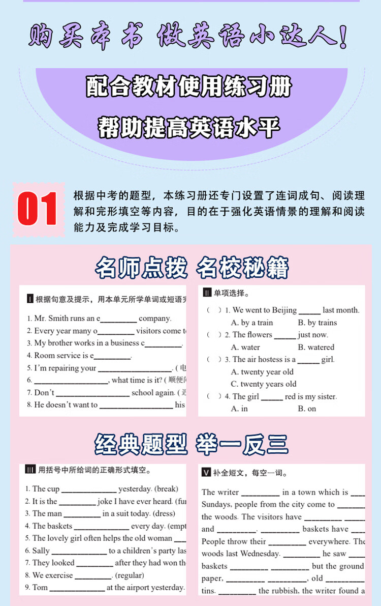 新概念英语一课一练精华版1册 根据句意及提示完成句子 单项选择 选词填空和用所给词语的正确形式填空 按要求完成句子 翻译句子 阅读理解 写作练习