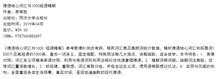German Core Vocabulary and 1000 Phrases Li Changsheng Roots and Affixes English Tandem Memory Method German Word Book German Learning Books German Vocabulary Encyclopedia Goethe B1 Exam Tongji University Press