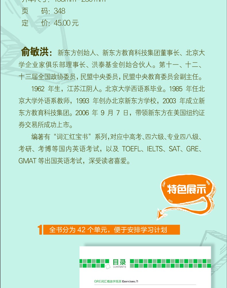现货包邮 新东方 GRE词汇精选乱序版学练测 俞敏洪 词汇绿宝书练习册 gre词汇词根+联想记忆法