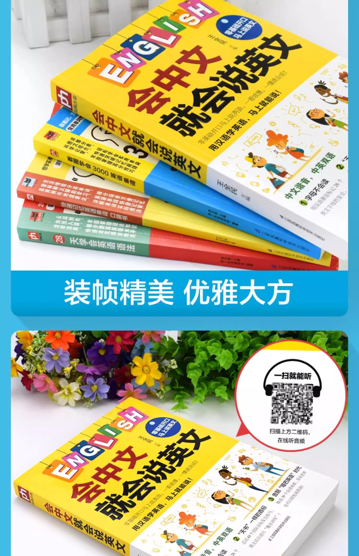 Ein kompletter Satz mit 4 Bänden. Lernen Sie Englisch ohne Grundkenntnisse. Lernen Sie Chinesisch und sprechen Sie Englisch + Grammatikwörter. Chinesische homophone chinesische Schriftzeichen. Englisches Erinnerungsbuch. Sprechen Sie sofort Englisch. Keine Grundlagen. Selbstlernbuch für Erwachsene zur täglichen Kommunikation der gesprochenen Sprache. Lernen Sie 3000 englische Wörter, indem Sie sich Bilder ansehen.