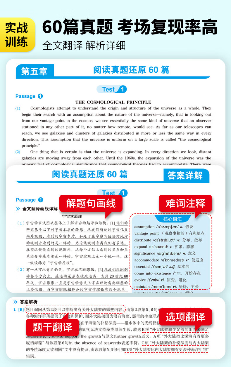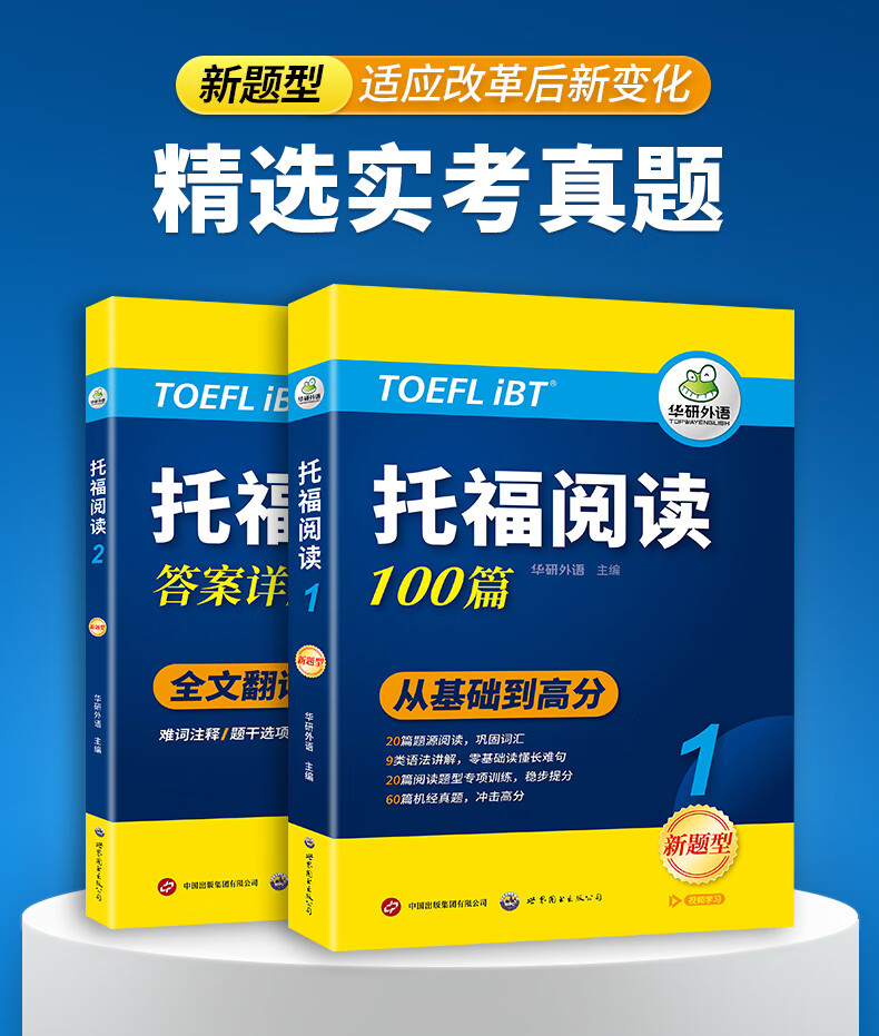 Huayan Foreign Language 2025 Autumn TOEFL Reading 100 articles, selected materials from the same source as the real test questions, strengthened vocabulary and grammar, with free translations of practical test questions from previous years, IELTS/TOEFL English series