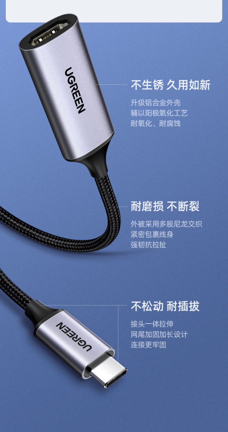 绿联Type-C转HDMI母转接头雷电4/5线转换器高清4K60/2K144Hz投屏USB-C扩展适用MacBook/iPadAir笔记本