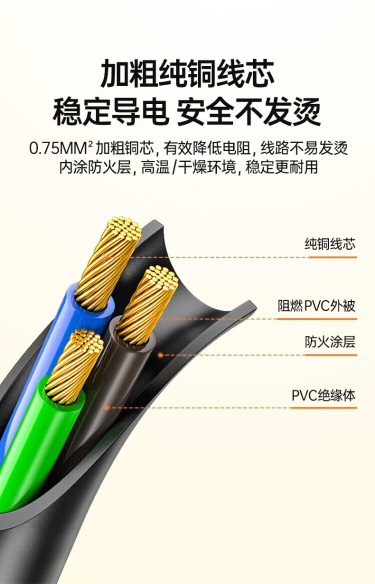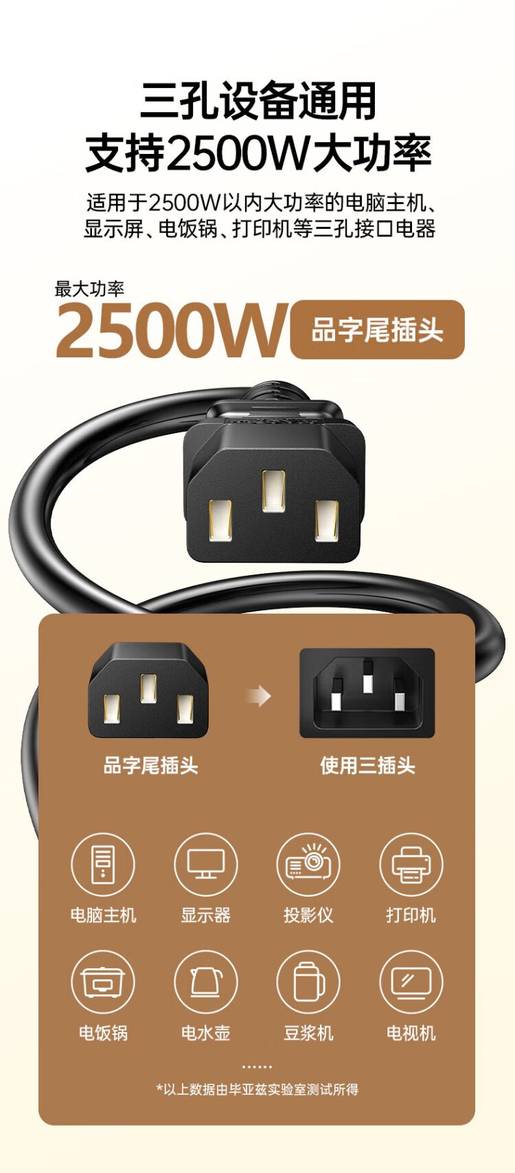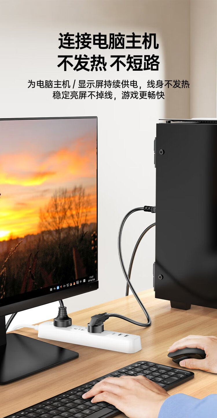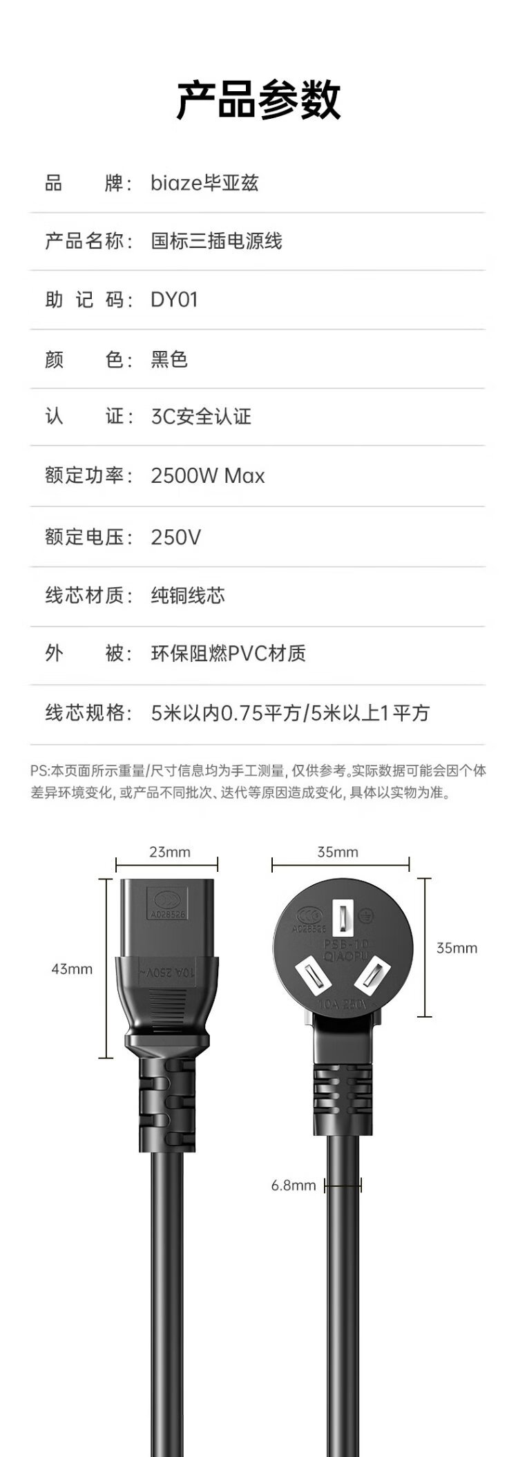 Biaz 3C power cord 1 meter computer host national standard three-hole power connection cable suitable for desktop computer host box rice cooker electric kettle projector DY01